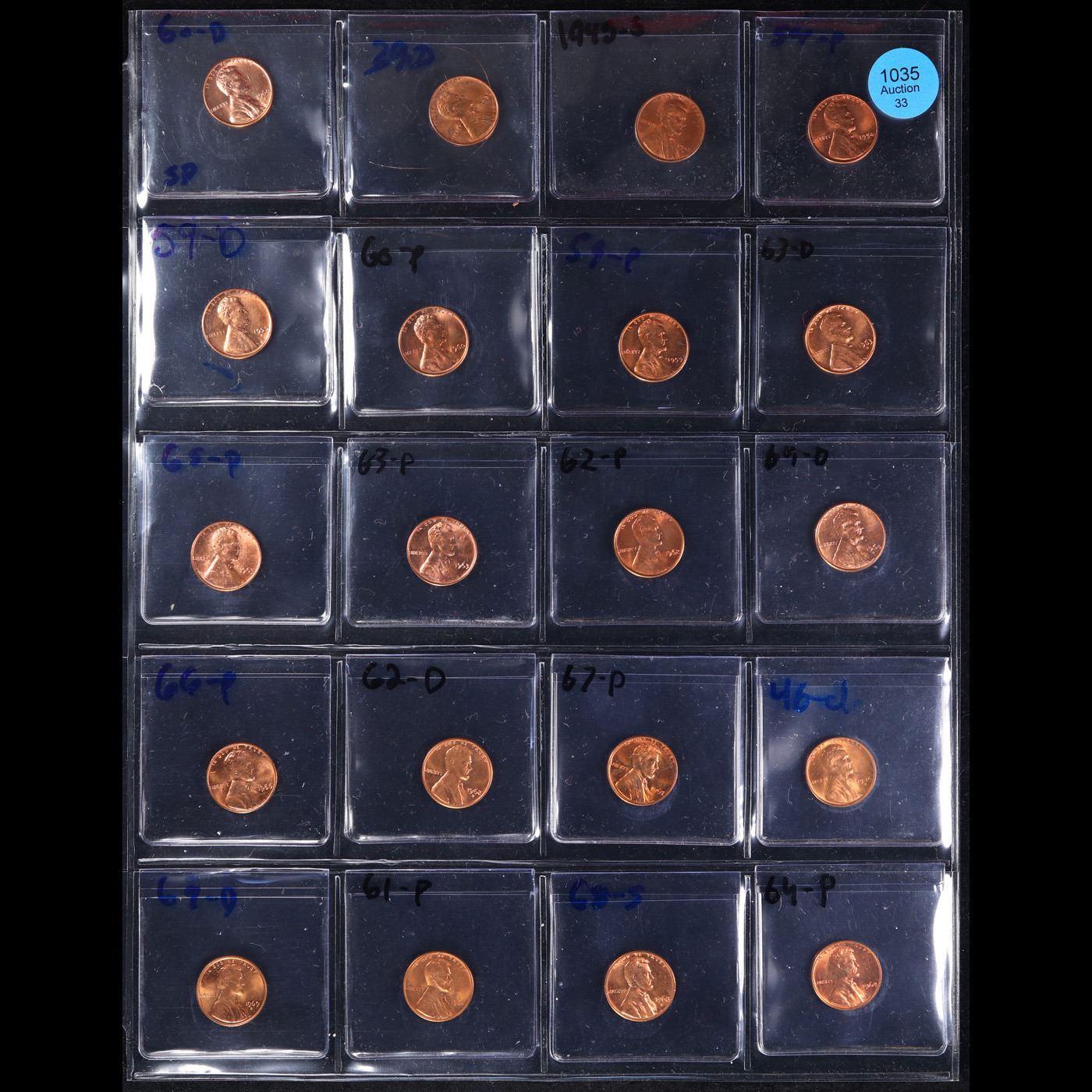Page of 20 Different Date Lincoln Cents All Red, Most Gem! UNC or Better - Huge Liifetime Collection