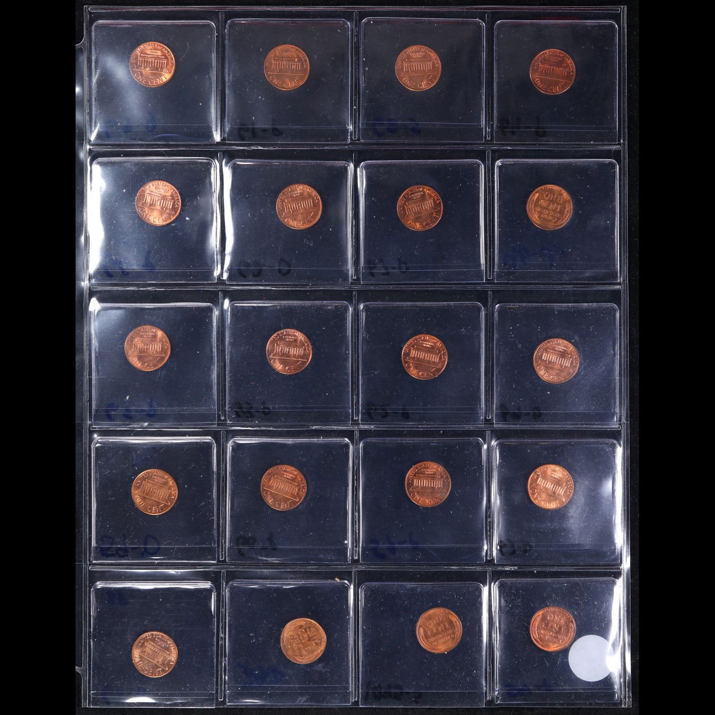 Page of 20 Different Date Lincoln Cents All Red, Most Gem! UNC or Better - Huge Liifetime Collection - Too Many Coins To Auction Individually. 0 We have received a huge collection of over 10 thousand US coins in flips, 2x2 holders, and 20 coin pages. We are forced, due to limited lots, to sell this collection in pages of 20 coins. This Lot is for 1 Page of 20 Lincoln Cents All Different Dates All Red, Most Gem! UNC or Better These pages could not be reviewed by anyone in our office due to time constraints. We estimate the value of each page to meet or exceed $200 in value! Good luck and happy hunting.