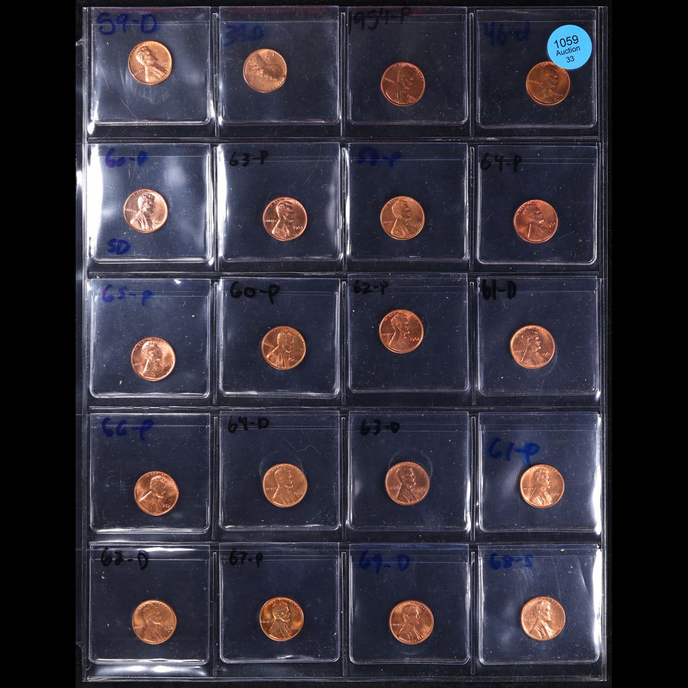 Page of 20 Different Date Lincoln Cents All Red, Most Gem! UNC or Better - Huge Liifetime Collection - Too Many Coins To Auction Individually. 0 We have received a huge collection of over 10 thousand US coins in flips, 2x2 holders, and 20 coin pages. We are forced, due to limited lots, to sell this collection in pages of 20 coins. This Lot is for 1 Page of 20 Lincoln Cents All Different Dates All Red, Most Gem! UNC or Better These pages could not be reviewed by anyone in our office due to time constraints. We estimate the value of each page to meet or exceed $200 in value! Good luck and happy hunting.