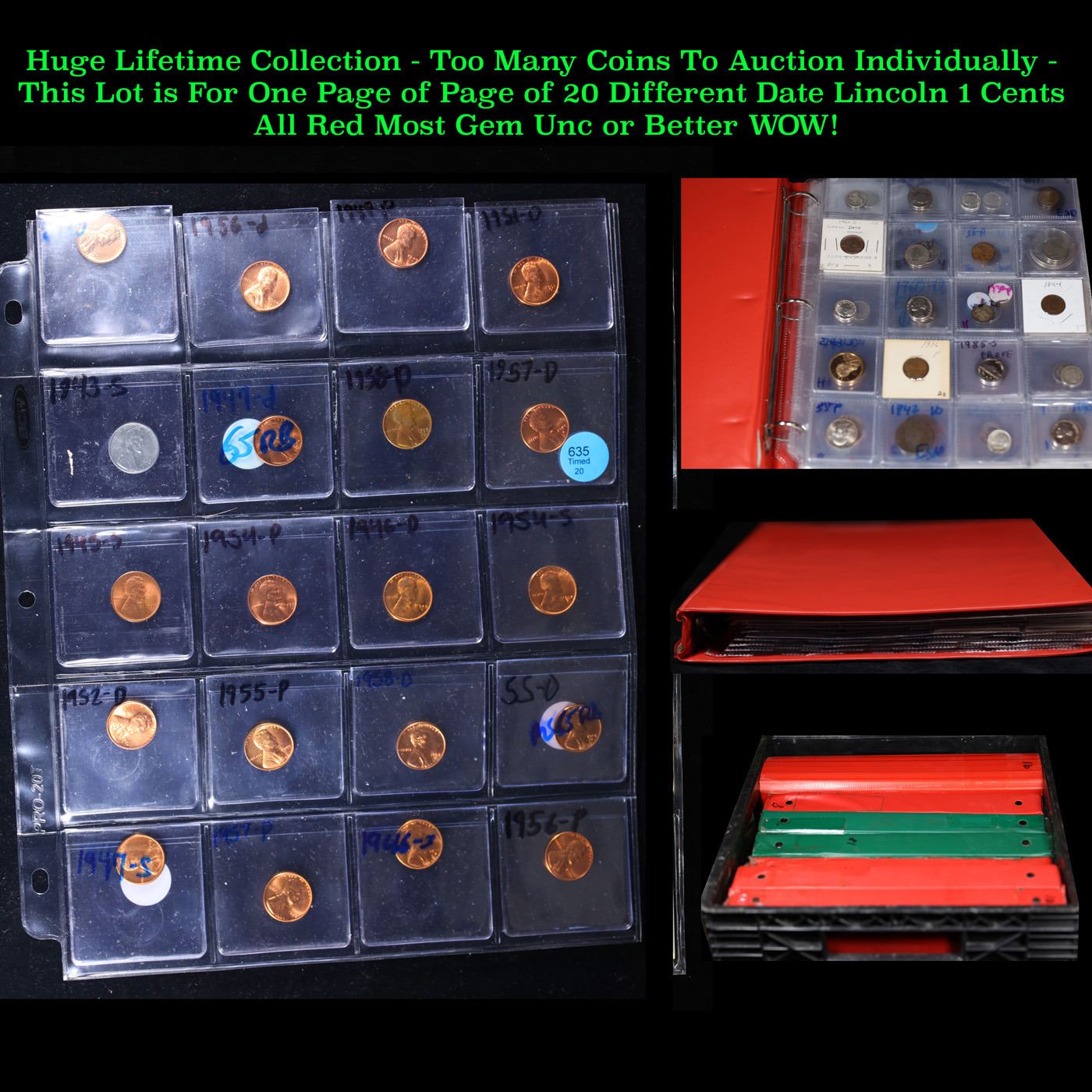 Page of 20 Different Date Lincoln Cents All Red, Most Gem! UNC or Better