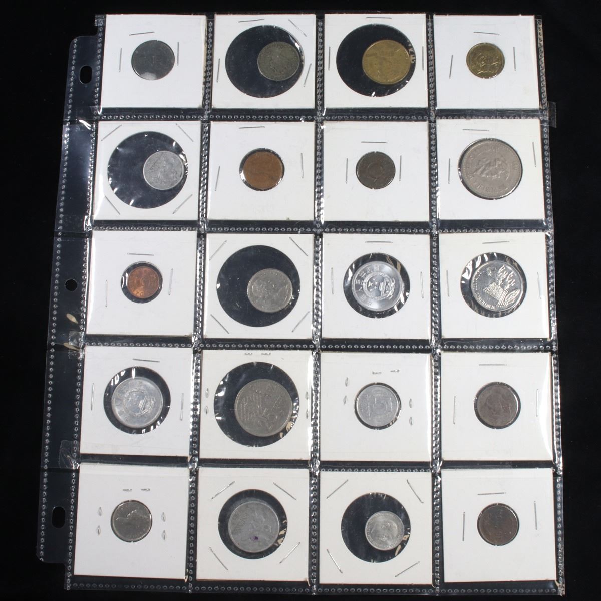 Page of 20 Mixed Foreign coins. Page of 20 Mixed Foreign coins. Page of 20 Mixed Foreign coins. This Page includes an assortment of 20 Foreign Coins, all in High Grade From Throught the world