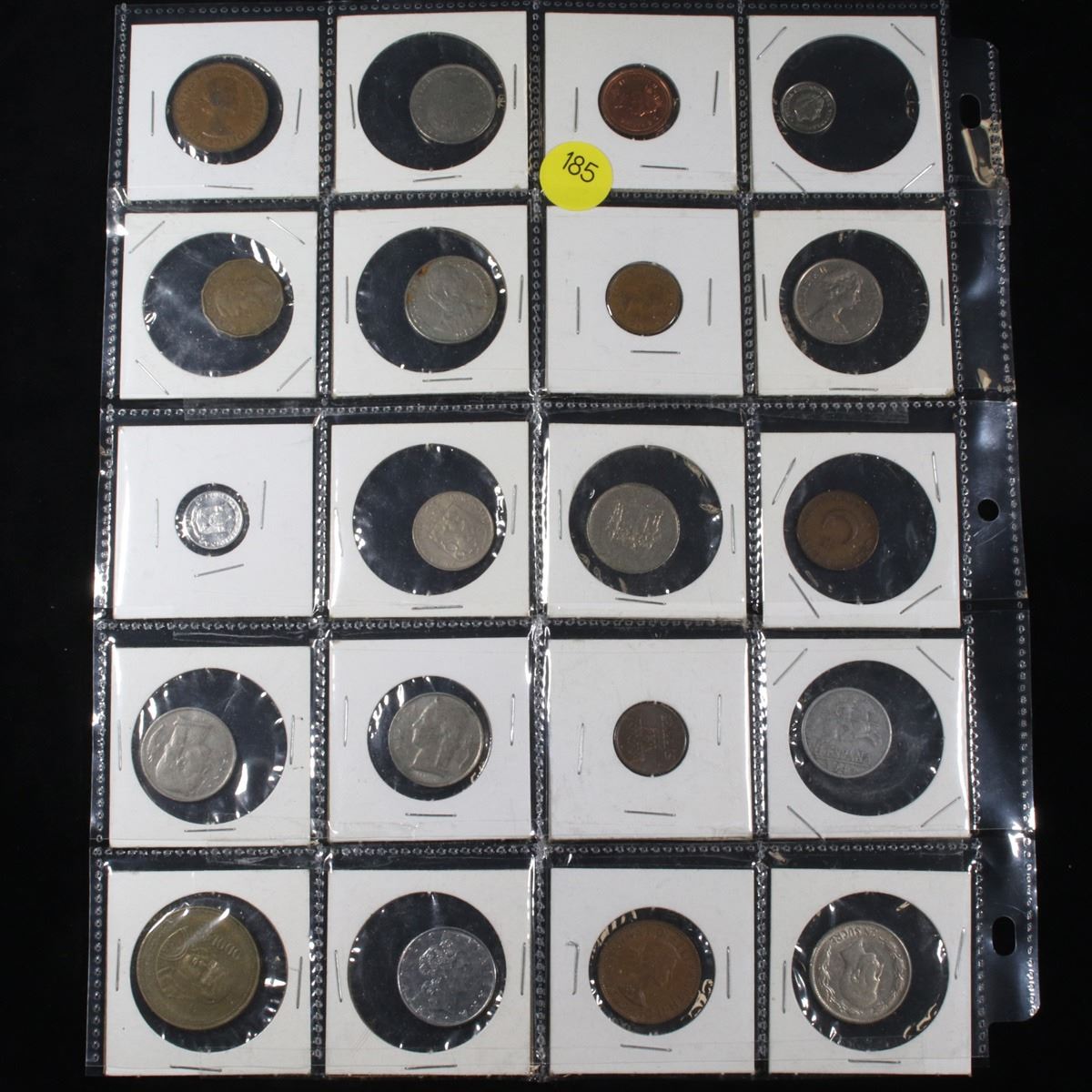 Page of 20 Mixed Foreign coins. This Page includes an assortment of 20 Foreign Coins, all in High Grade From Throught the world