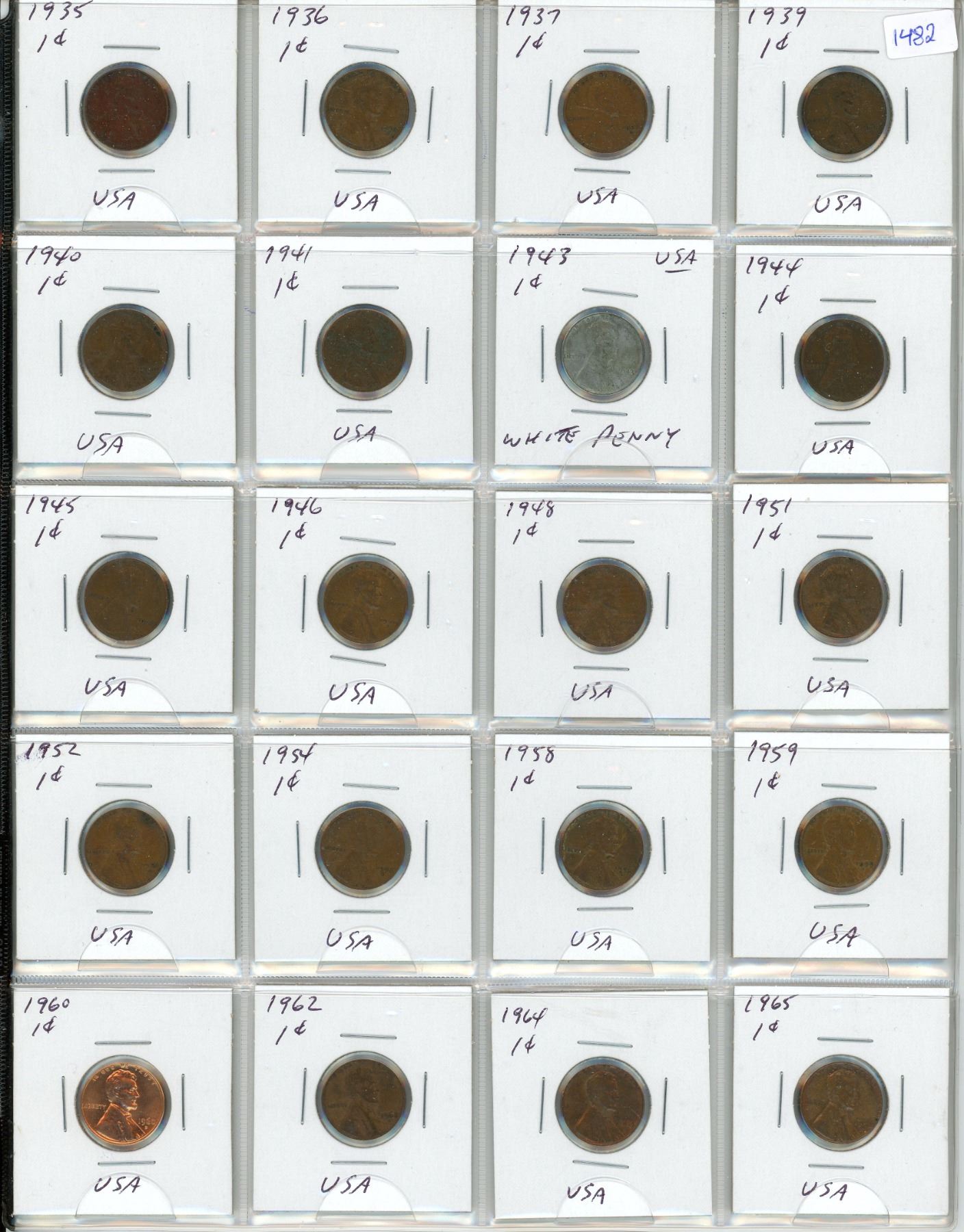 Page of 20 U.S.A. 1 Cent Coin - various years