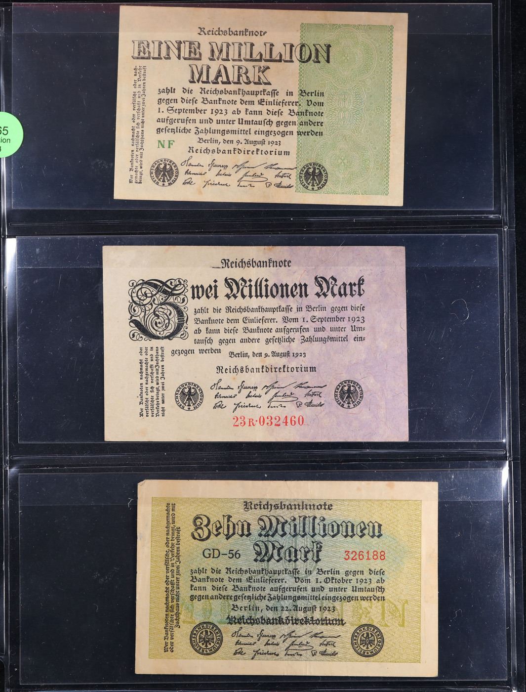 Page of 3 Germany 1920's Hyperinflation Notes 1923 1 million mark, 1923 3 Million Mark, 1923 10 Mill