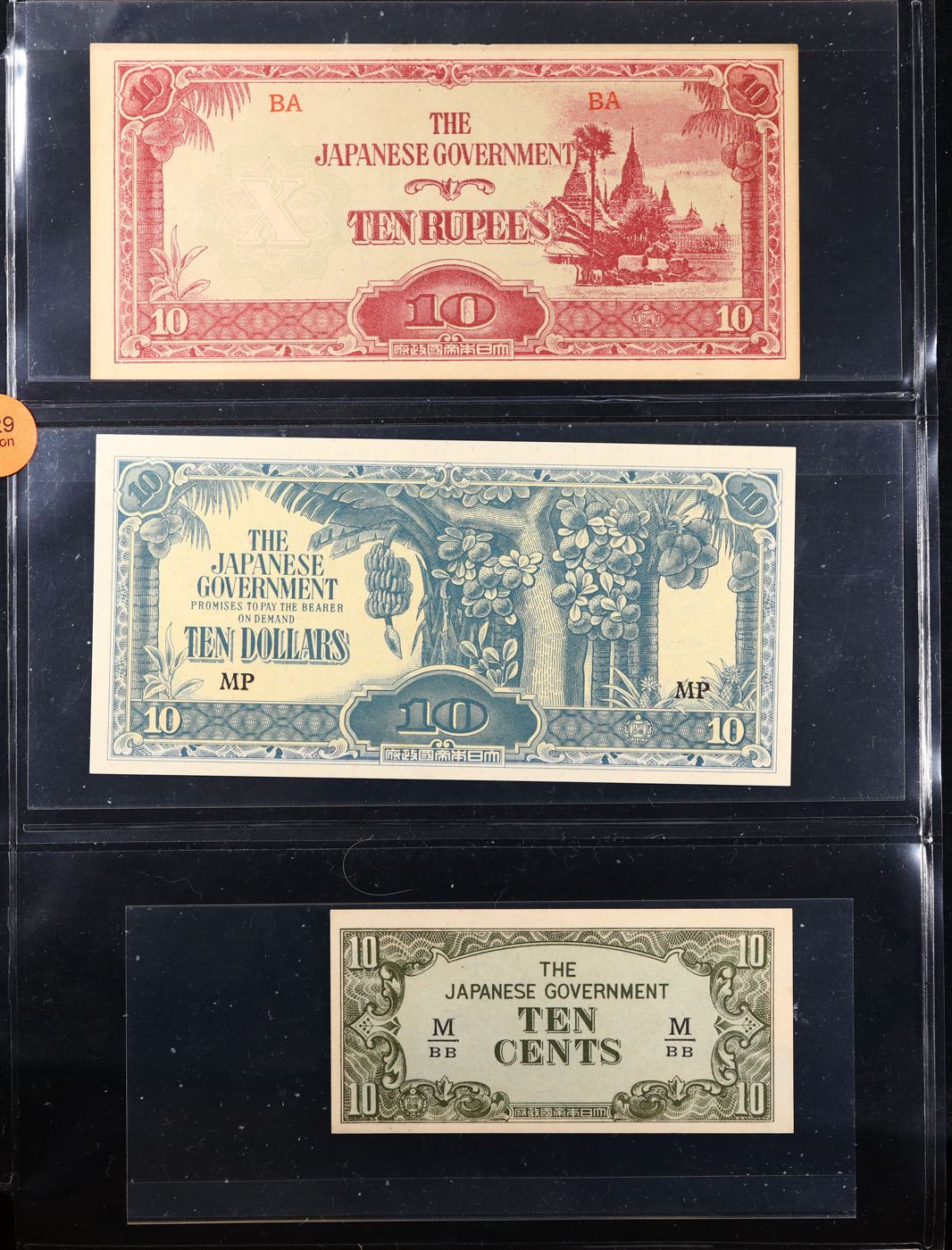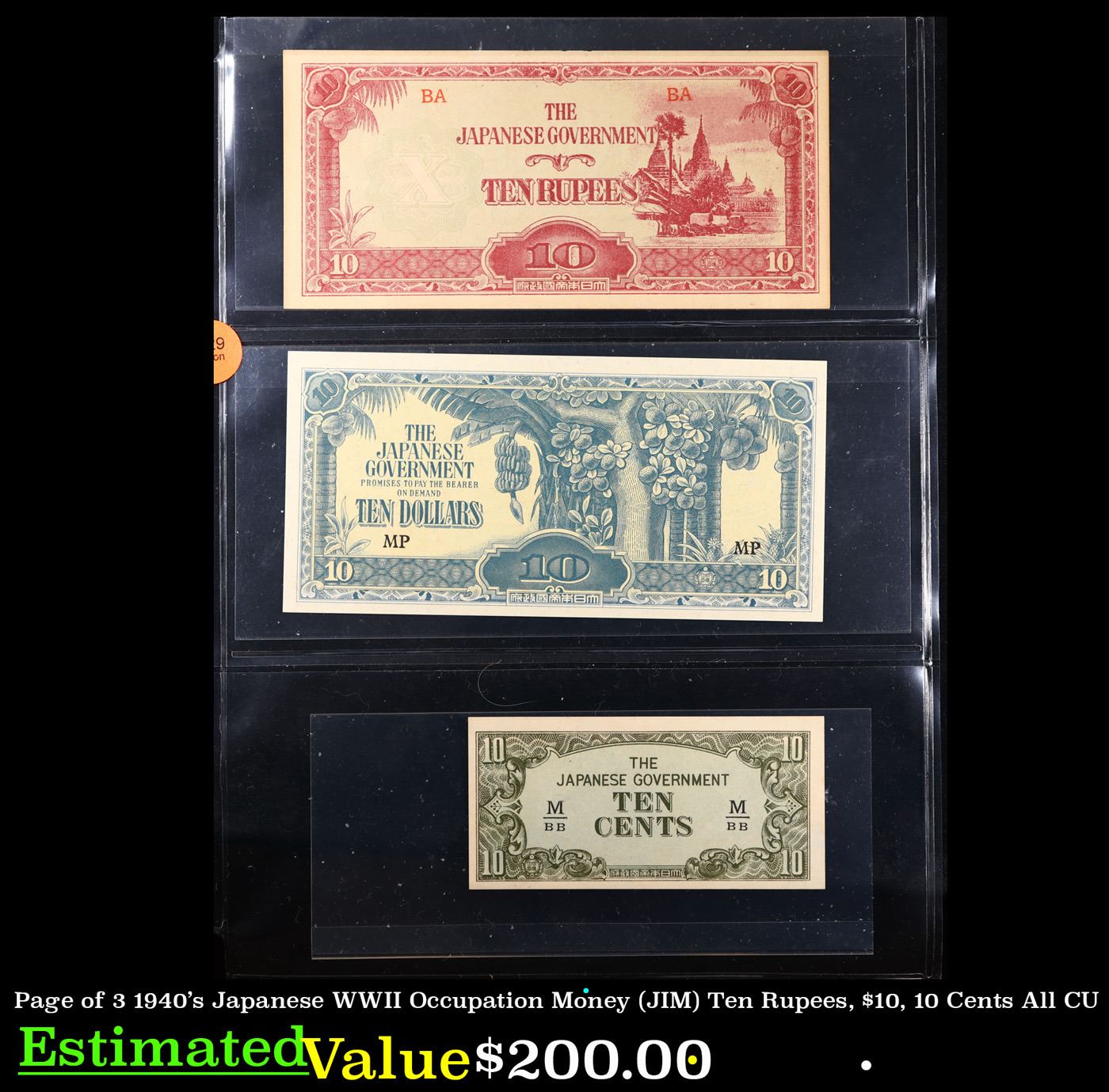 Page of 4 1940's Japanese WWII Occupation Money (JIM) Ten Rupees, $10, 10 Cents All CU