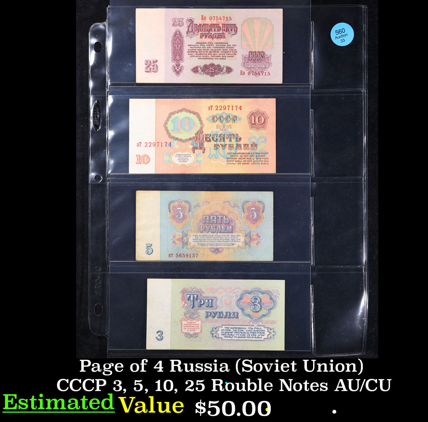 Page of 4 Russia (Soviet Union) CCCP 3, 5, 10, 25 Rouble Notes AU/CU