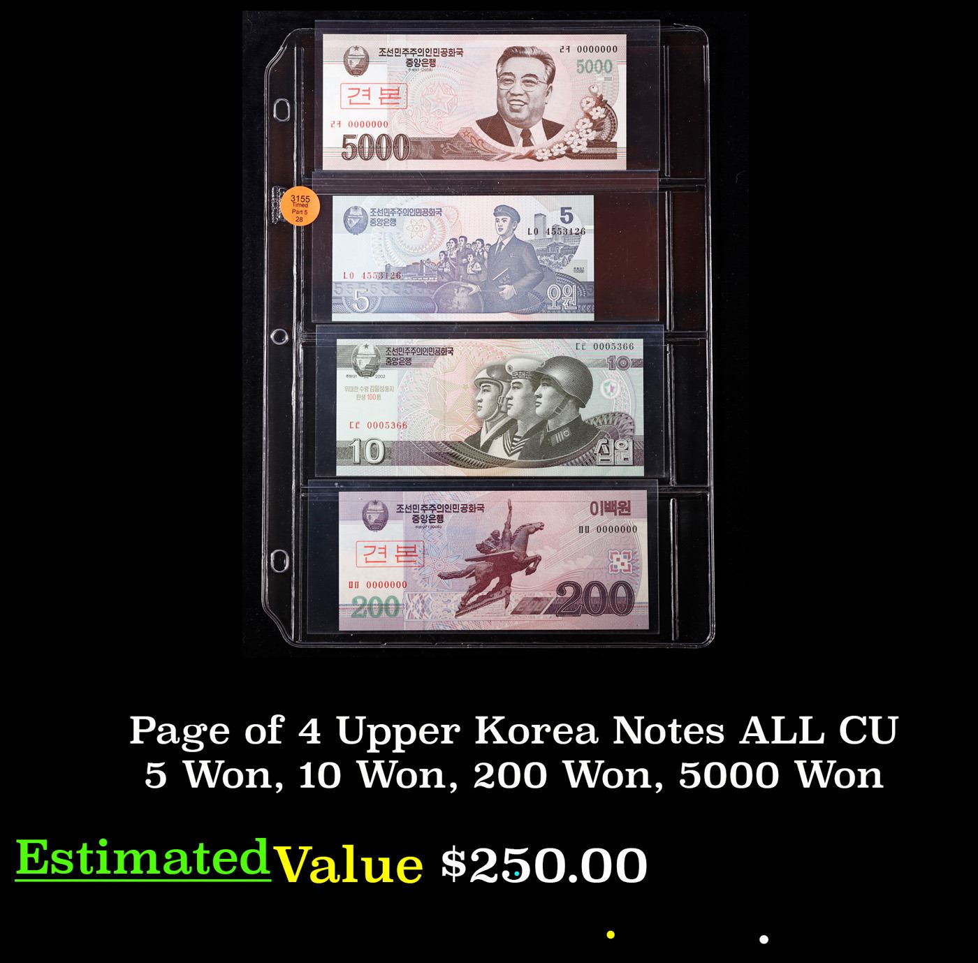 Page of 4 Upper Korea Notes ALL CU 5 Won, 10 Won, 200 Won, 5000 Won