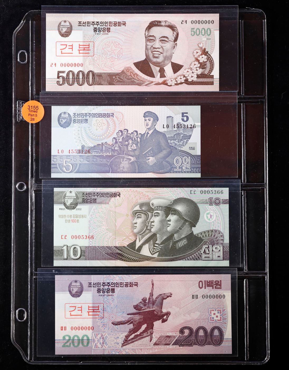 Page of 4 Upper Korea Notes ALL CU 5 Won, 10 Won, 200 Won, 5000 Won .