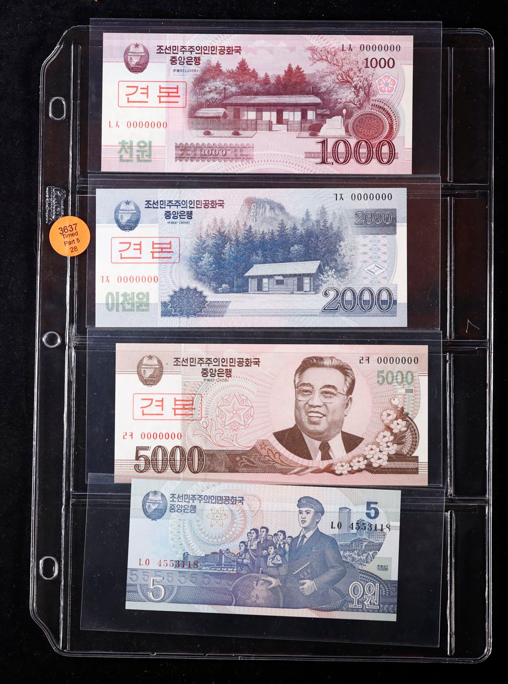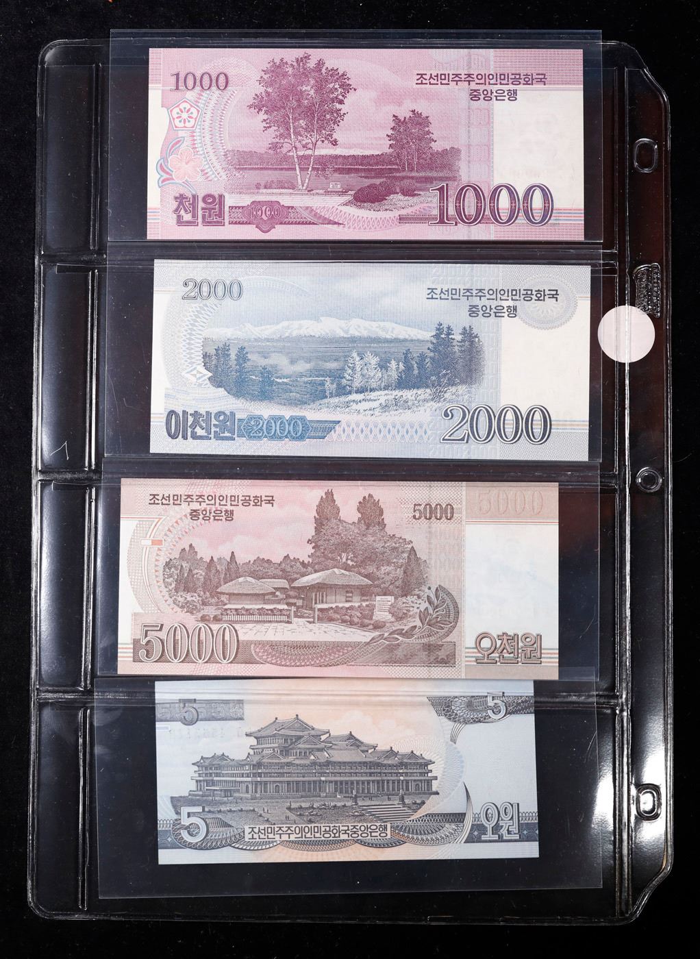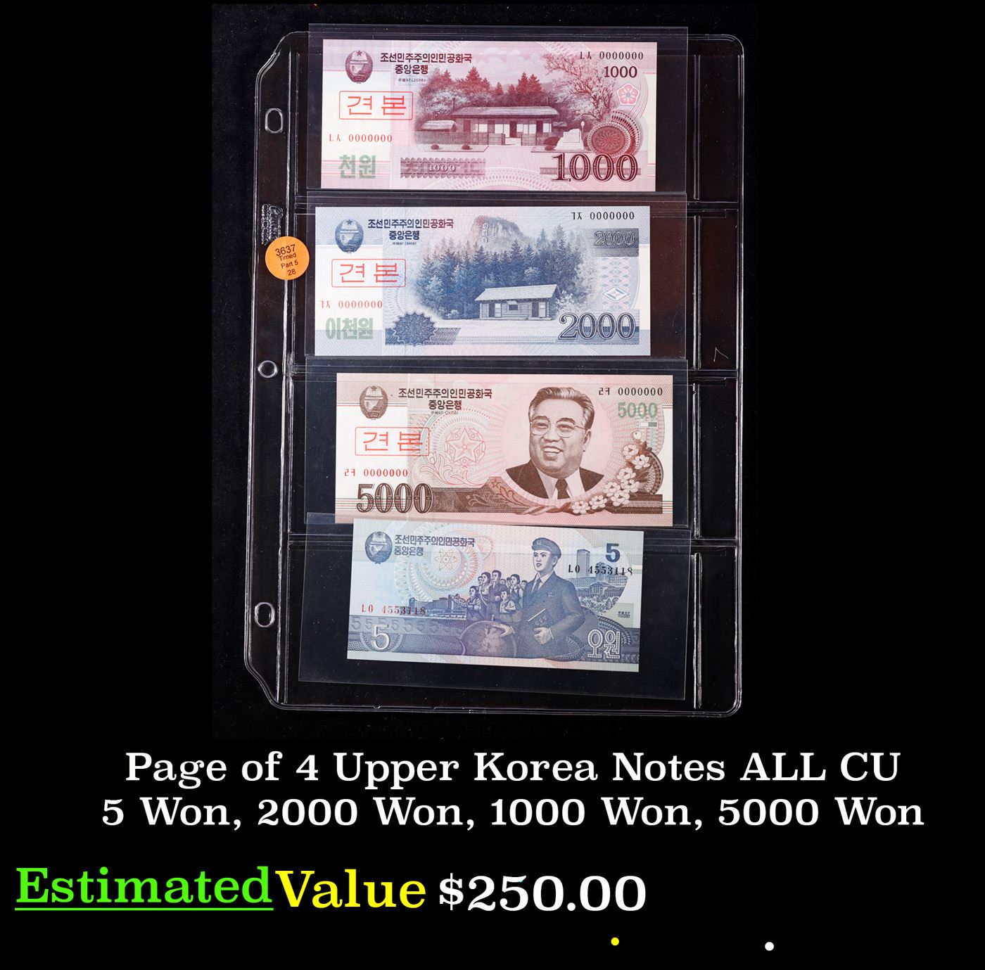 Page of 4 Upper Korea Notes ALL CU 5 Won, 2000 Won, 1000 Won, 5000 Won .