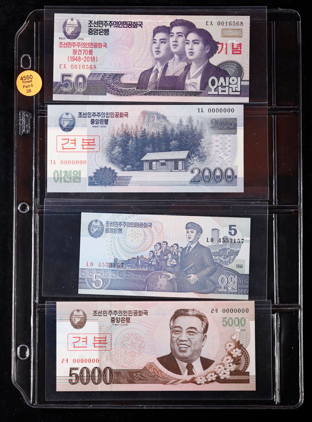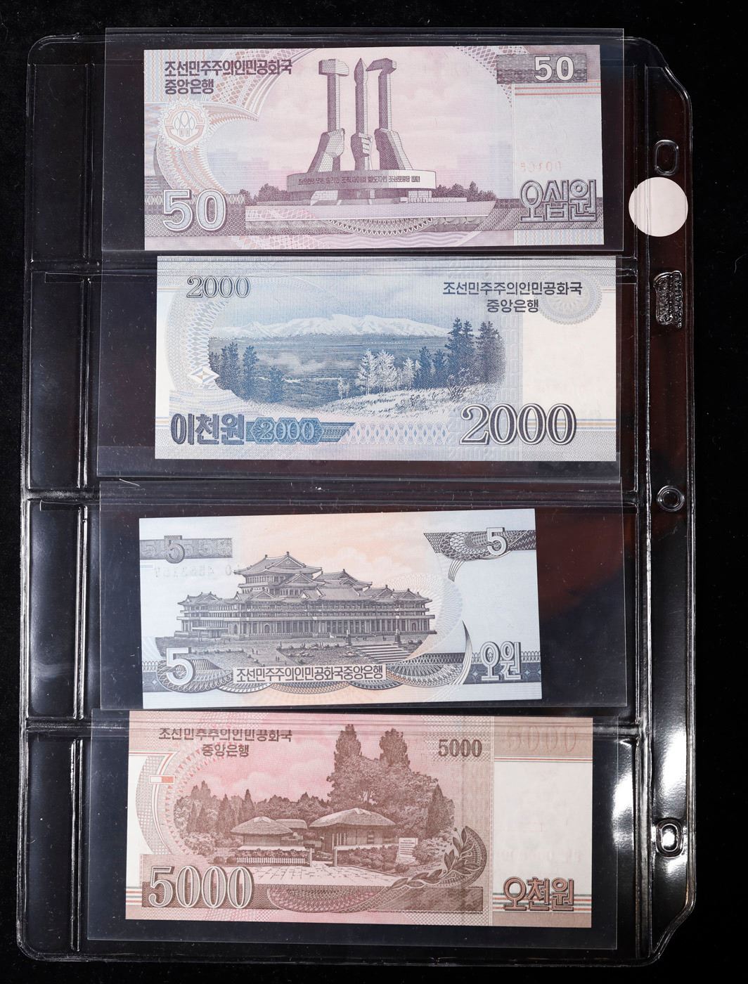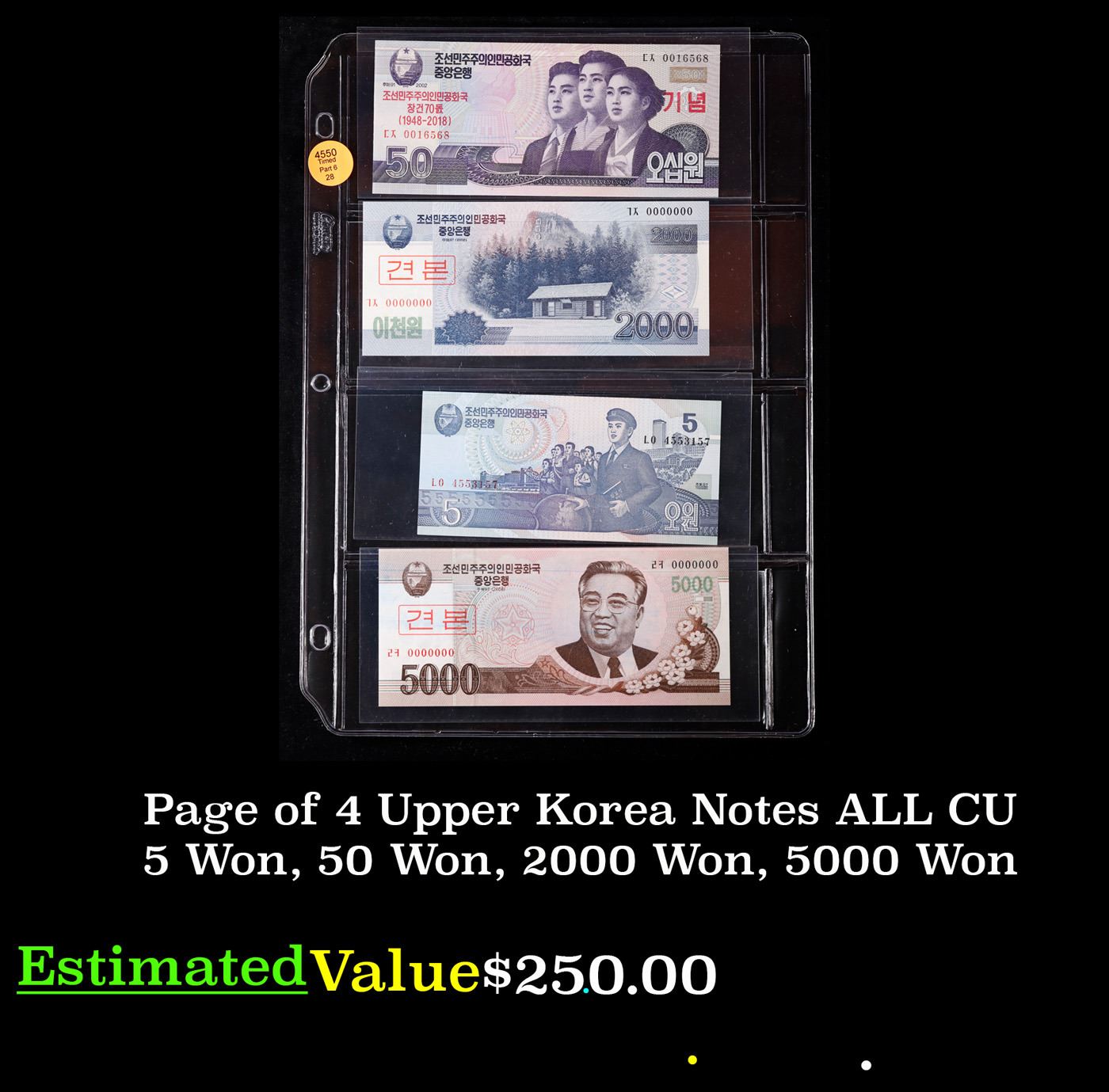 Page of 4 Upper Korea Notes ALL CU 5 Won, 50 Won, 2000 Won, 5000 Won .