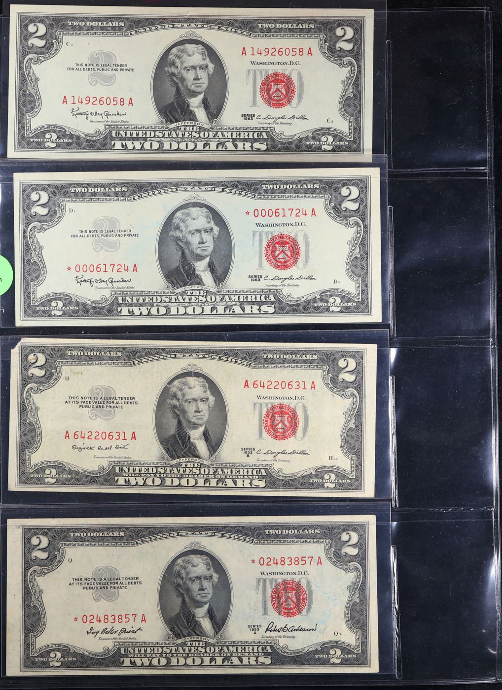 Page of 4x $2 Red Seal United States Notes **Star Note** 1953a, **Star Note** 1963, 1953a, 1963 AU/CU.