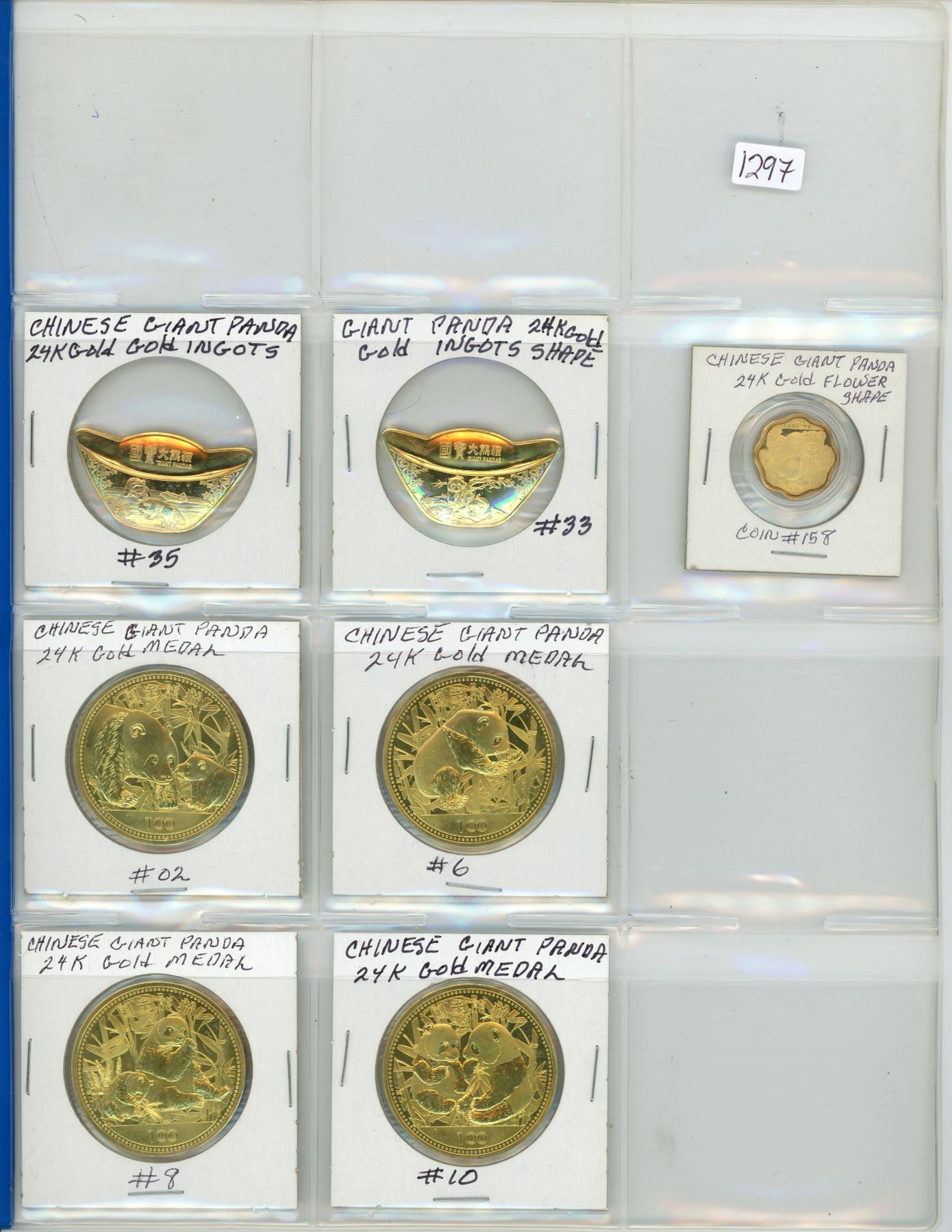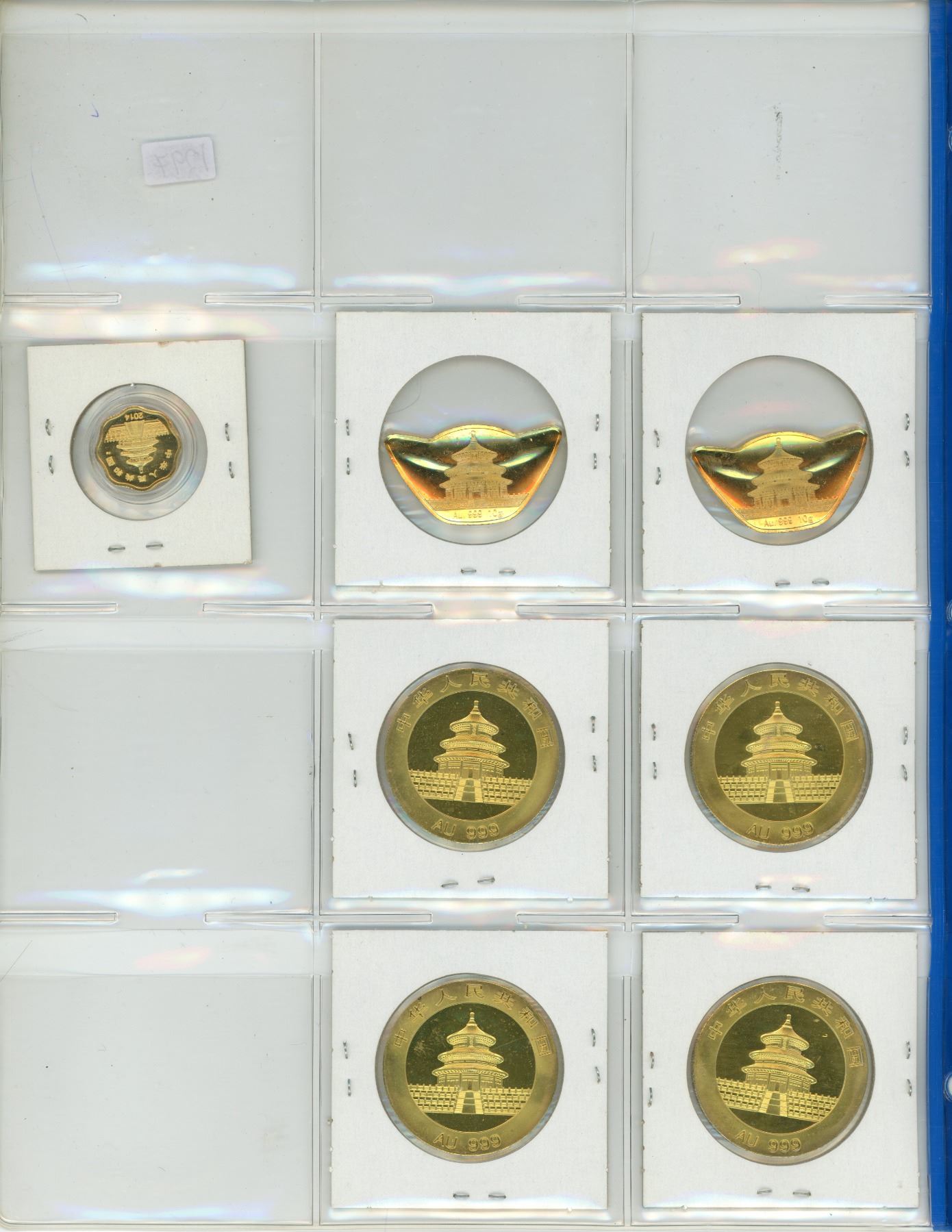 Page of Collector's gold panda coins - cannot verify if pure gold. Possibly gold plated.