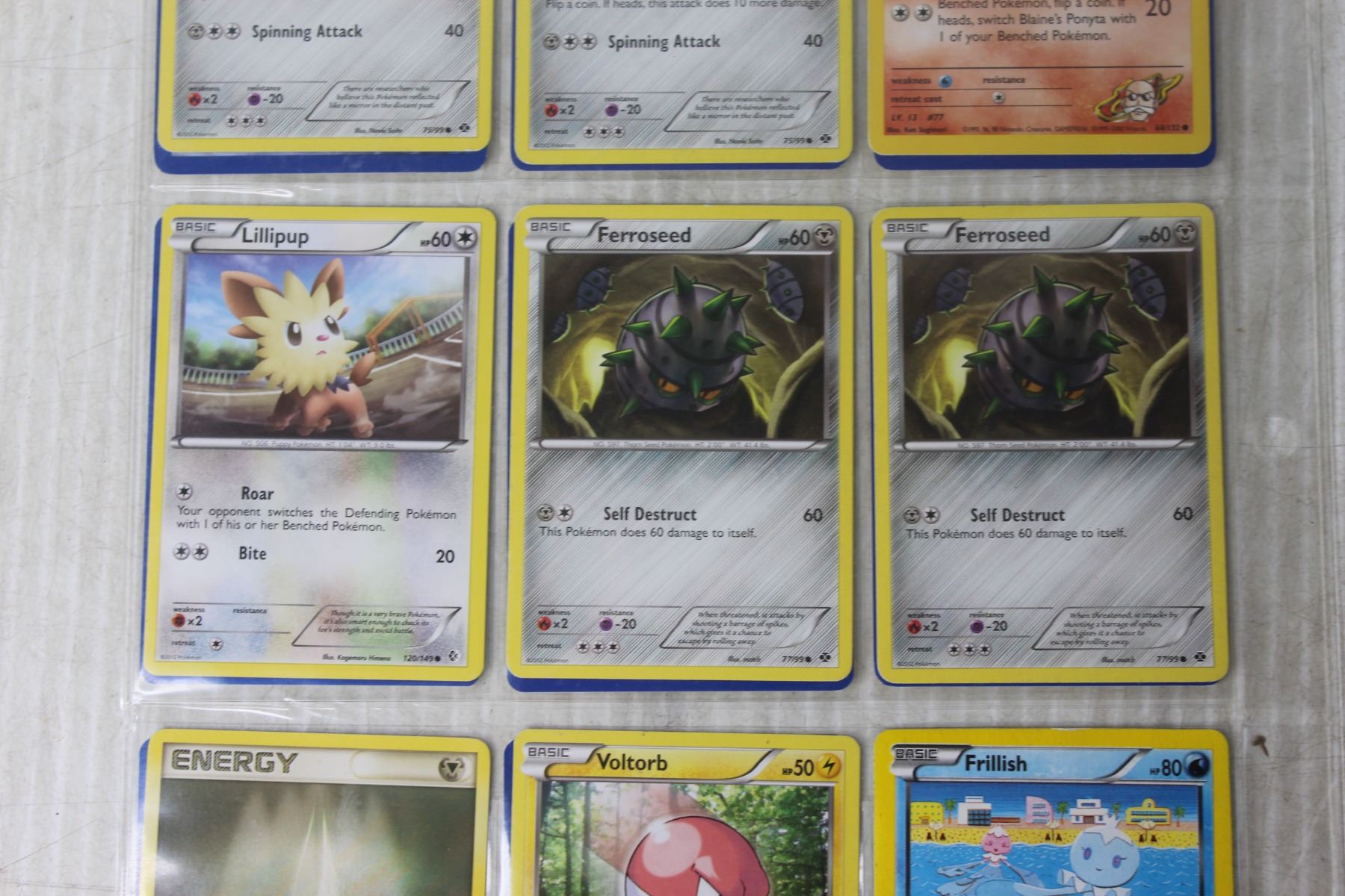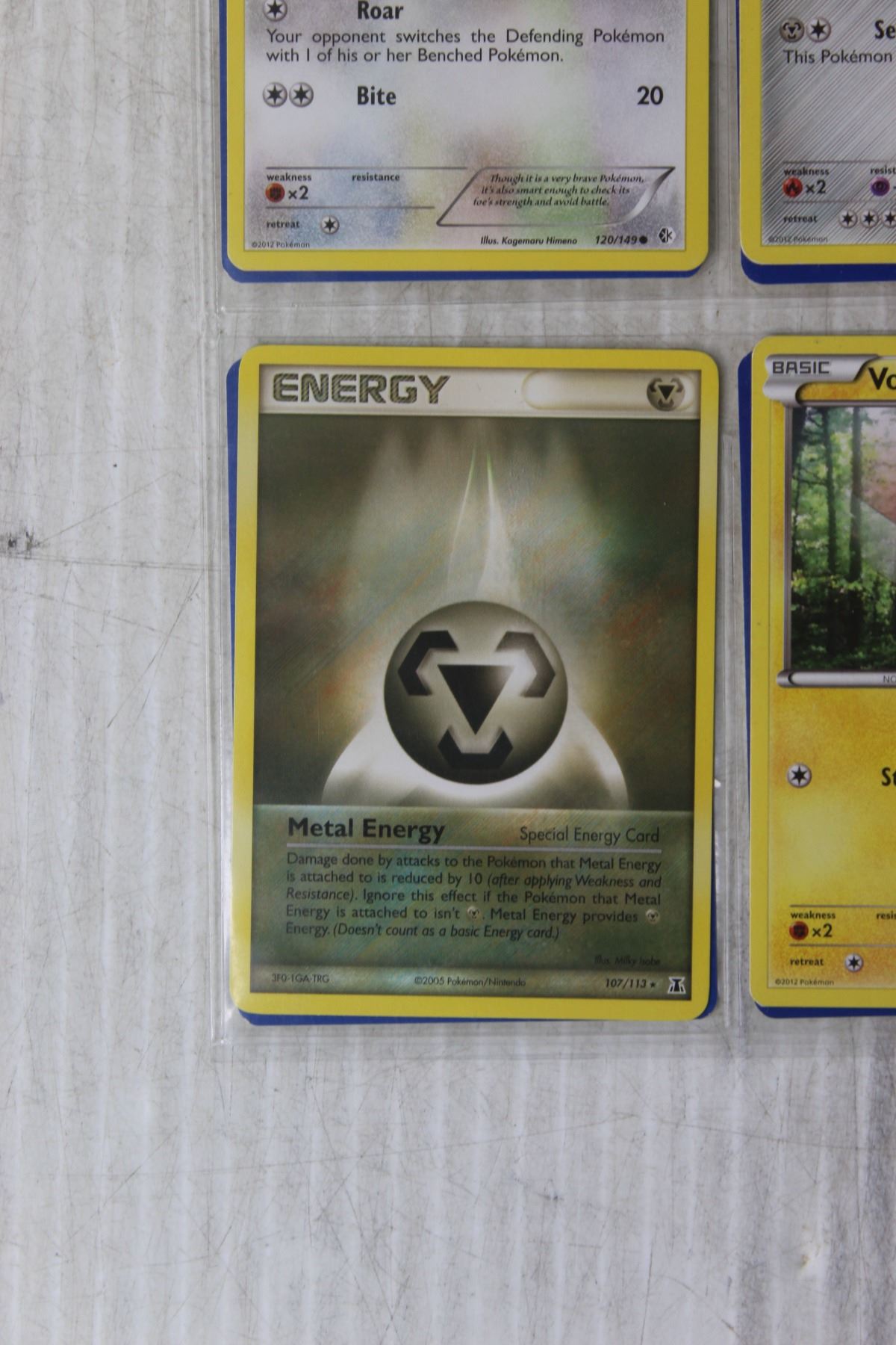 Page of Pokemon Cards with Rare Energy Card