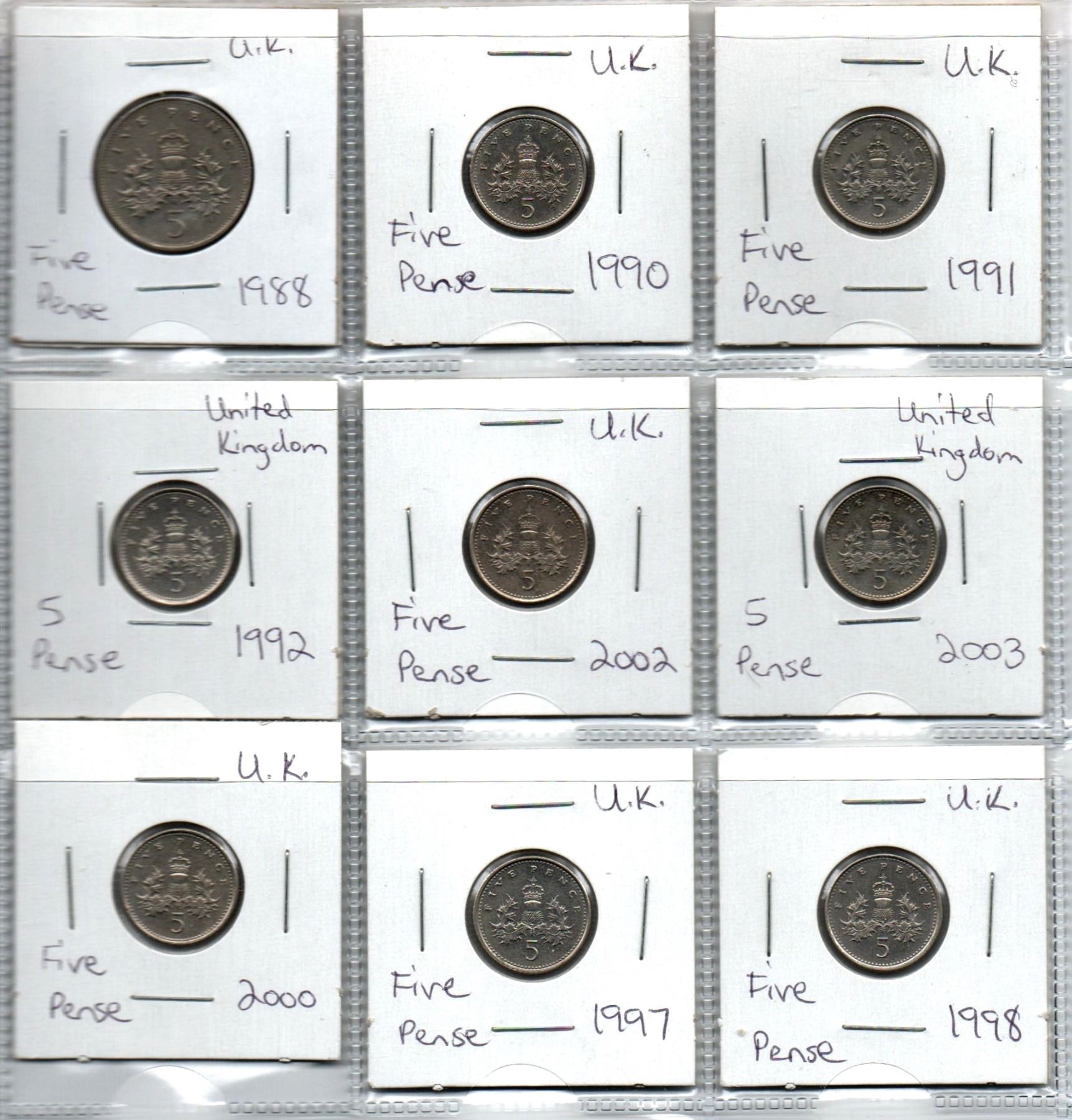Page of UK Five Pence