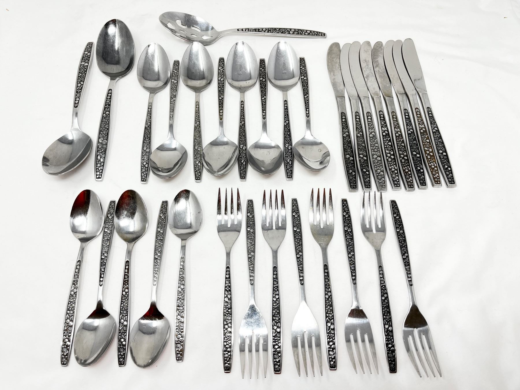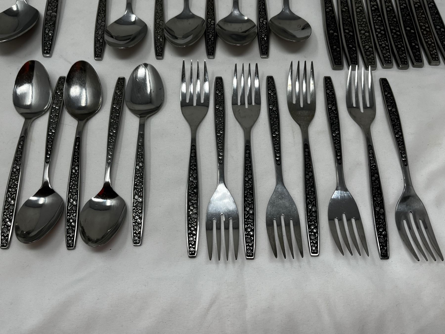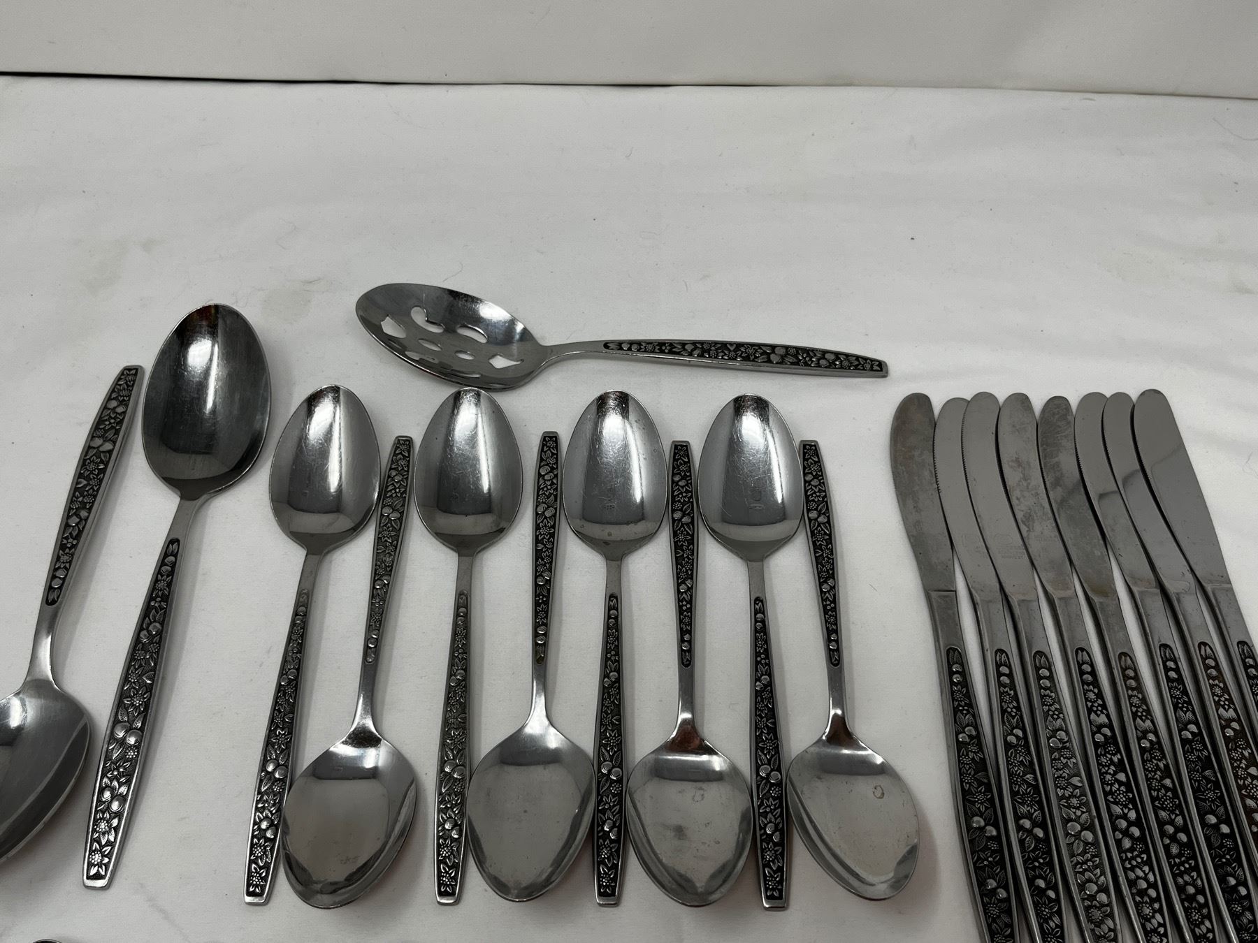 flatware set with harvest flower pattern. Made in Japan. Incomplete set.