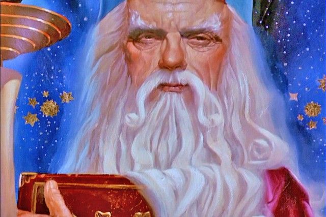 Pagemaster Original Centerpiece of Pagemaster Rotunda Dome Ceiling Painting Set - From the beloved all star live-action/animation fantasy feature “The Pagemaster” (1994) comes this once-in-a-lifetime piece of movie history. The center piece of the actual mind-blowing screen-used fully painted magical rotunda dome set. It is seen to great extent at the beginning of the film when Richard (Macaulay Culkin) runs through Mr. Dewey/ The Pagemaster's (Christopher Lloyd) library and confronts this dome in the center of the building, that has, painted on its ceiling, like the Sistine Chapel, the four classic story themes: Fantasy, Horror, Adventure and Heroics. The monolithic impressive paintings all end up melting onto the floor and come to life, sending Macaulay into their fantasy world. This is all orchestra by the Pagemaster to help Richard confront his fears and open up his life to all its wondrous possibilities. Therefore in the center of the dome of this astonishing set piece surrounded by the four themes, is the all-knowing Pagemaster himself. At the end of the story, the Pagemaster reappears after Richard has gone through his journey and commands Dr. Jekyll, Captain Ahab, Long John Silver and the Dragon to reappear to congratulating him, then sends a newly charged Richard back into the real world to begin a new life. The stunning panoramic paintings were created by legendary Award-Winning International Artist/Illustrator Chris Hopkins, known for his work on such epics as "Indiana Jones and the Temple of Doom", and "Star Wars - Return of the Jedi". He was specially selected by producer David Kirschner for this monumental job. Hopkins created these super-sized tableau life-like creations utilizing special oils, to invoke the feeling of classic children book illustrations seen through a child's imagination, as well as their dreams and fears. Each section is sold separately, but if one buyer collects the full set, they will also receive the additional rotunda connecting set pieces to re-create the dome. Mr. Hopkins will also personally signed each section to the buyer. Because of its size, please allow for in-studio pick-up or third-party shipping. The Pagemaster centerpiece is approx 44" in diameter.