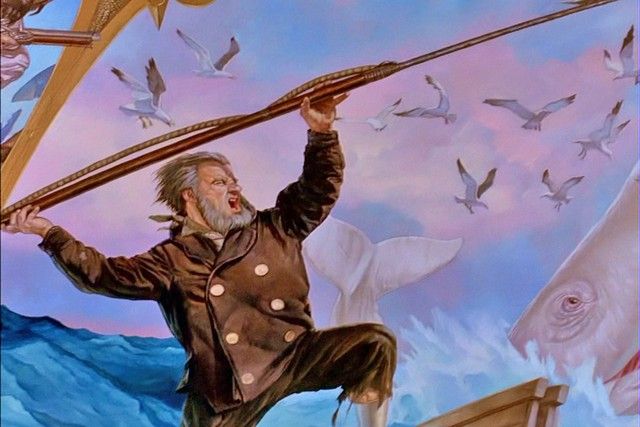 Pagemaster Original Massive Capt. Ahab & Moby Dick Rotunda Dome Ceiling Painting Set Piece - From the beloved all star live-action/Animation fantasy feature “The Pagemaster” (1994) comes this once-in-a-lifetime piece of movie history. An amazing mammoth-size section of the actual screen used fully painted rotunda dome set. It is seen to great extent at the beginning of the film when Richard, (Macaulay) Culkin runs through Mr. Dewey/ The Pagemaster's (Christopher Lloyd) library and confronts this dome that has, painted on its ceiling, the four classic story themes: Fantasy, Horror, Adventure and Heroics. The massive impressive paintings all end up melting onto the floor and come to life, sending Macaulay into their fantasy world. Having been driven into the open waters of the Land of Adventure they encounter the obsessed and totally insane Captain Ahab (George Hearn), who is out to kill the giant whale, Moby Dick. The stunning panoramic paintings were created by legendary Award-Winning International Artist/Illustrator Chris Hopkins, known for his work on such epics as "Indiana Jones and the Temple of Doom", and "Star Wars - Return of the Jedi". He was specially selected by producer David Kirschner for this monumental job. Hopkins created these super-sized tableau life-like creations utilizing classic oils, to invoke the feeling of classic children book illustrations seen through a child's imagination, as well as their dreams and fears. Each section is sold separately, but if one buyer collects the full set, they will also receive the additional rotunda connecting set pieces to re-create the dome. Mr. Hopkins will also personally signed each section to the buyer. Because of its size, please allow for in-studio pick-up or third-party shipping. Captain Ahab & Moby Dick section is approx 58"x58".