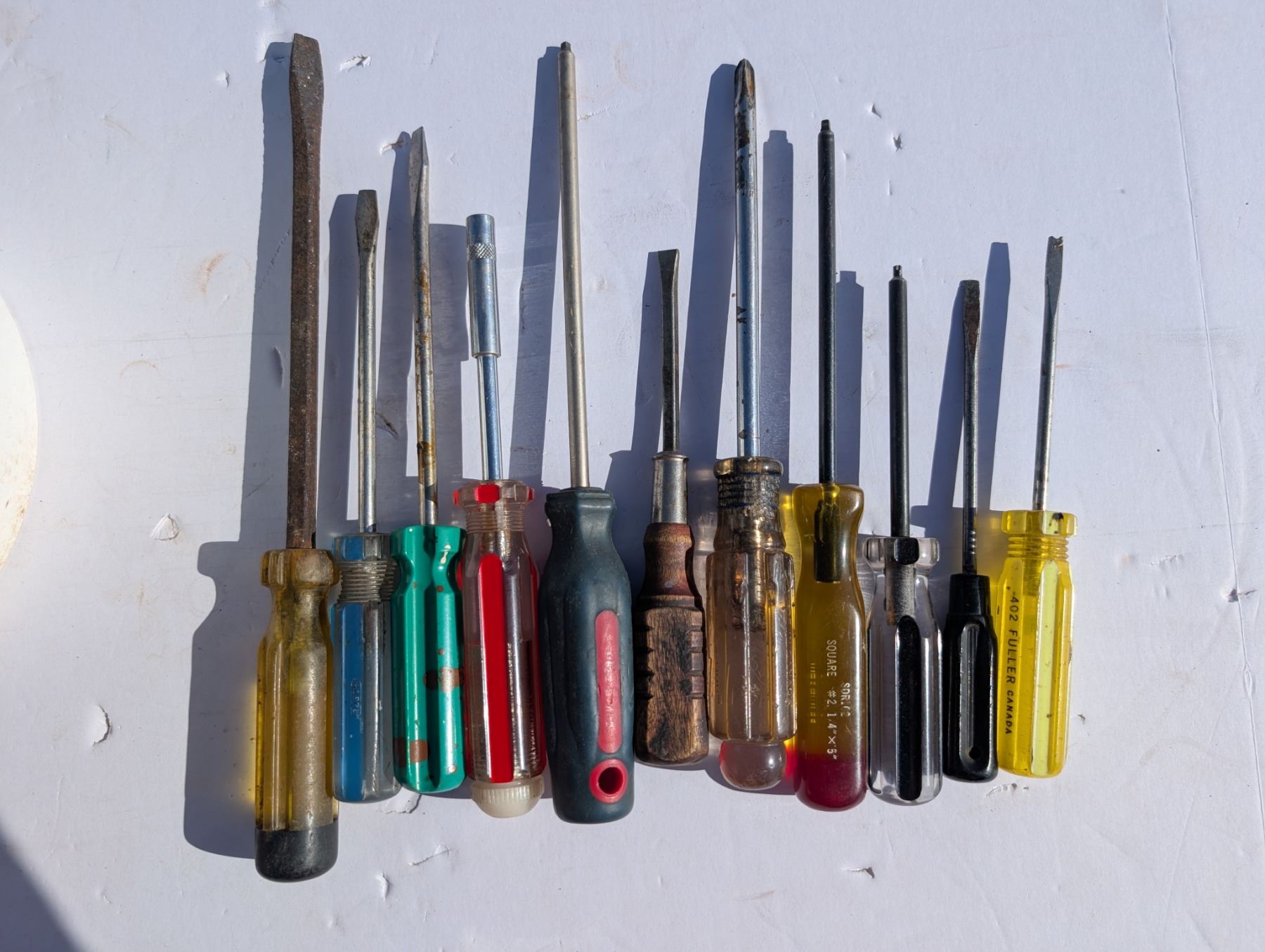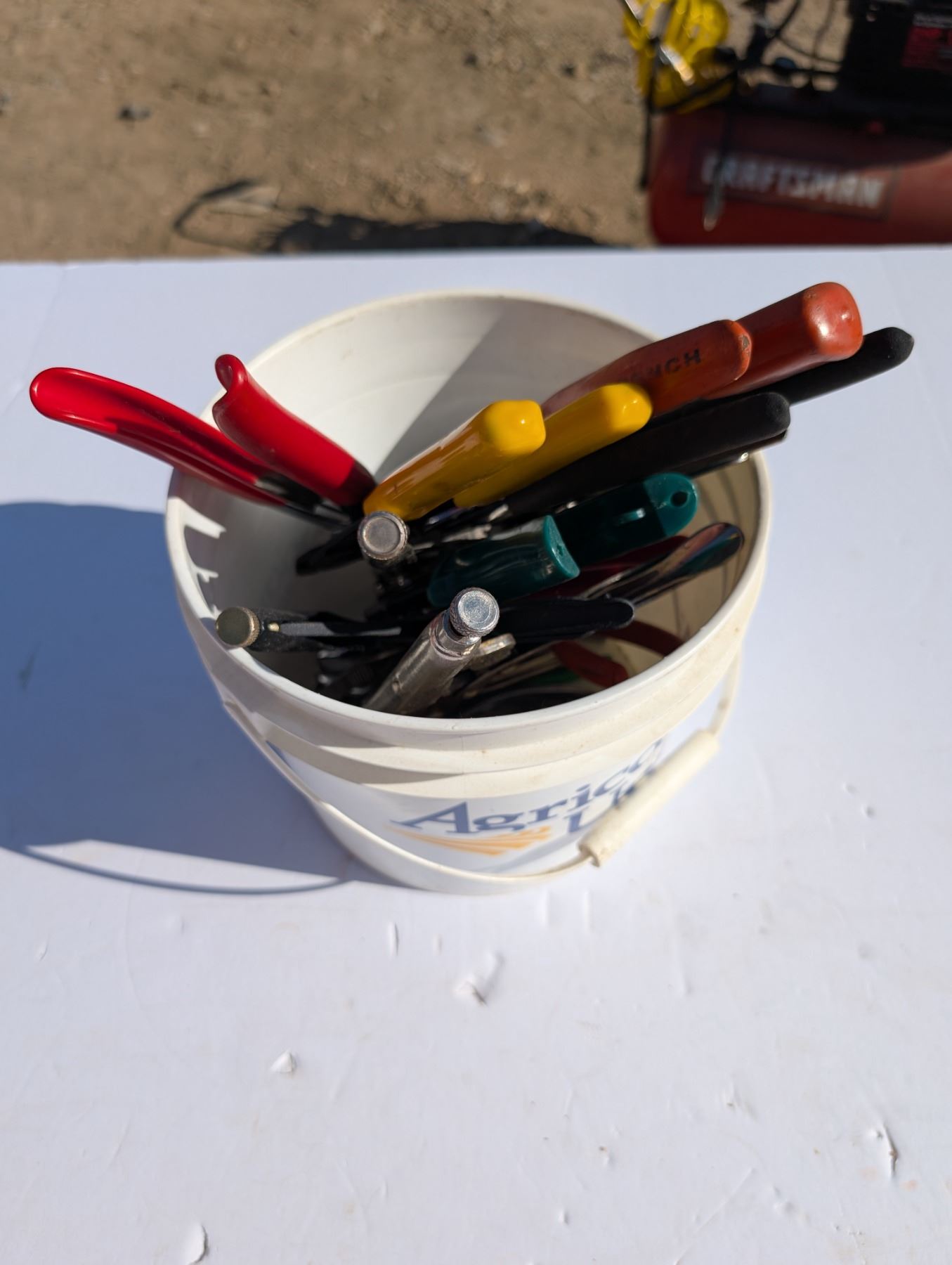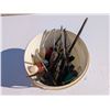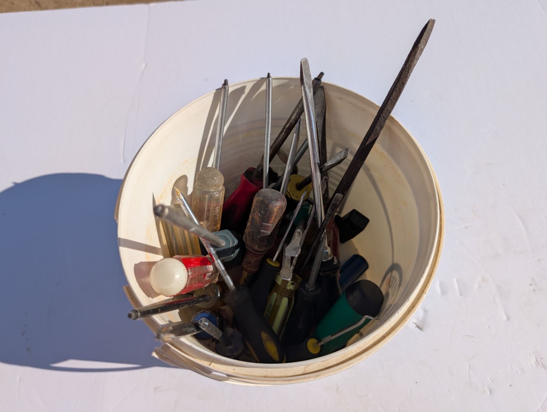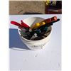 Pail full of Variety of Screw Drivers