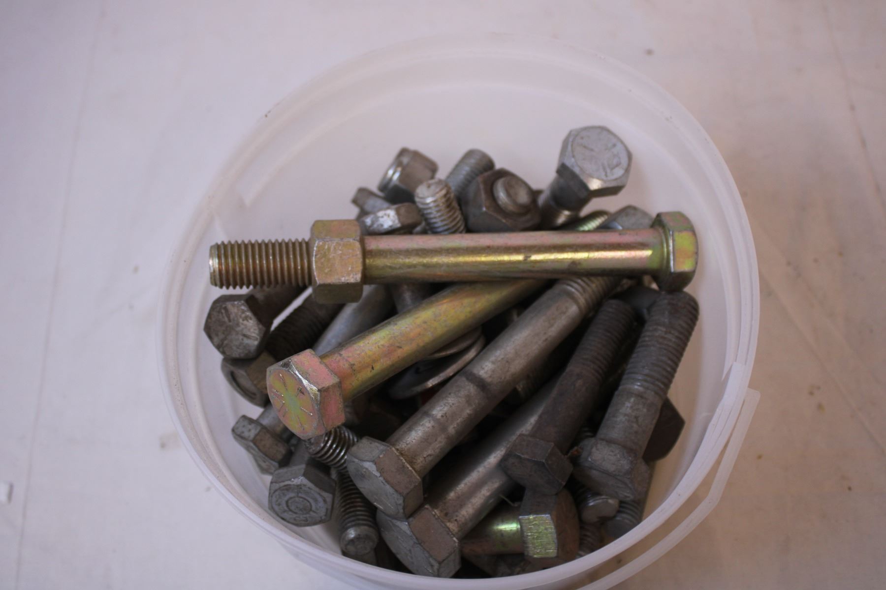 Pail of Asstd Large Bolts, Nuts, Washers