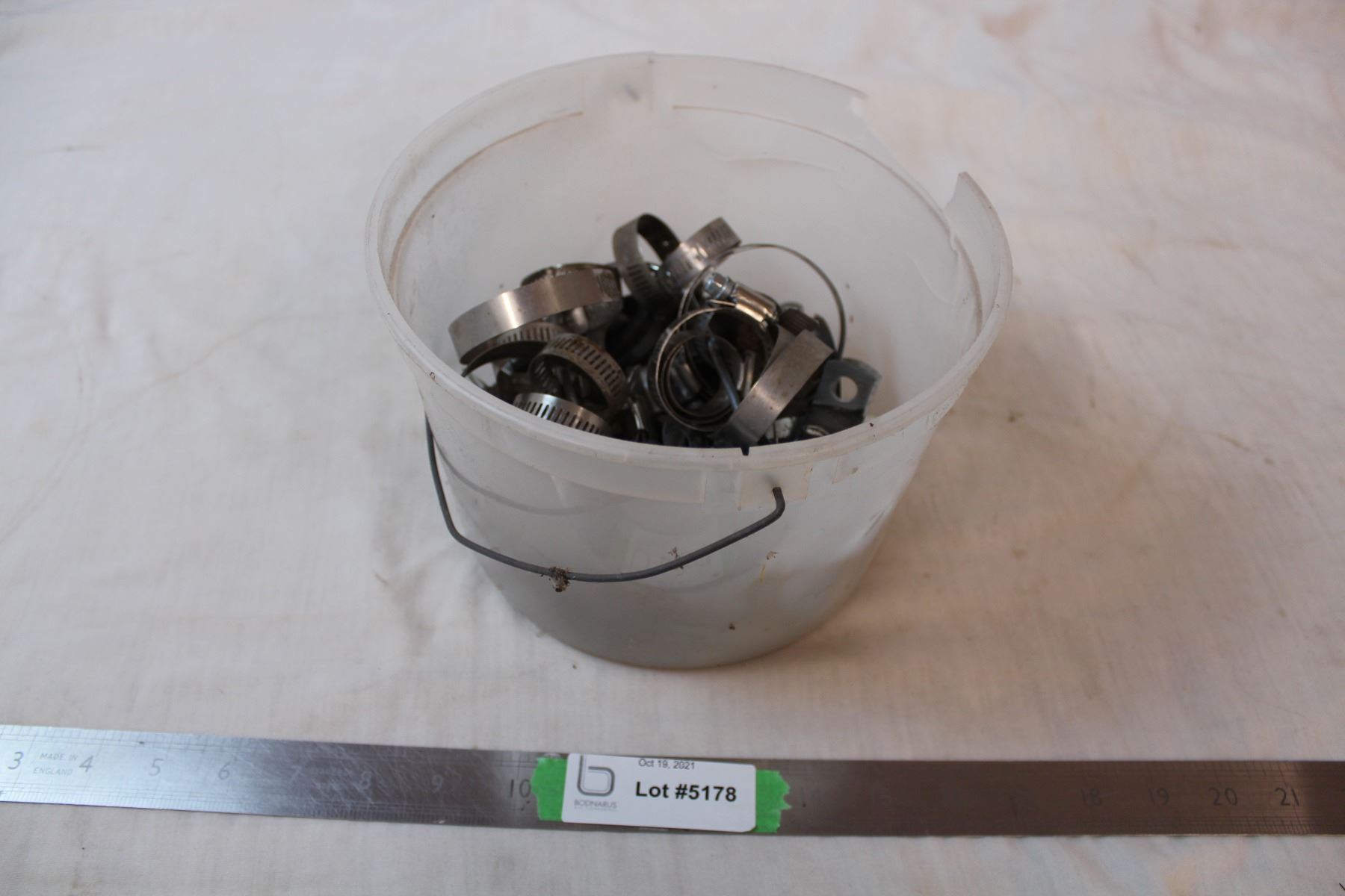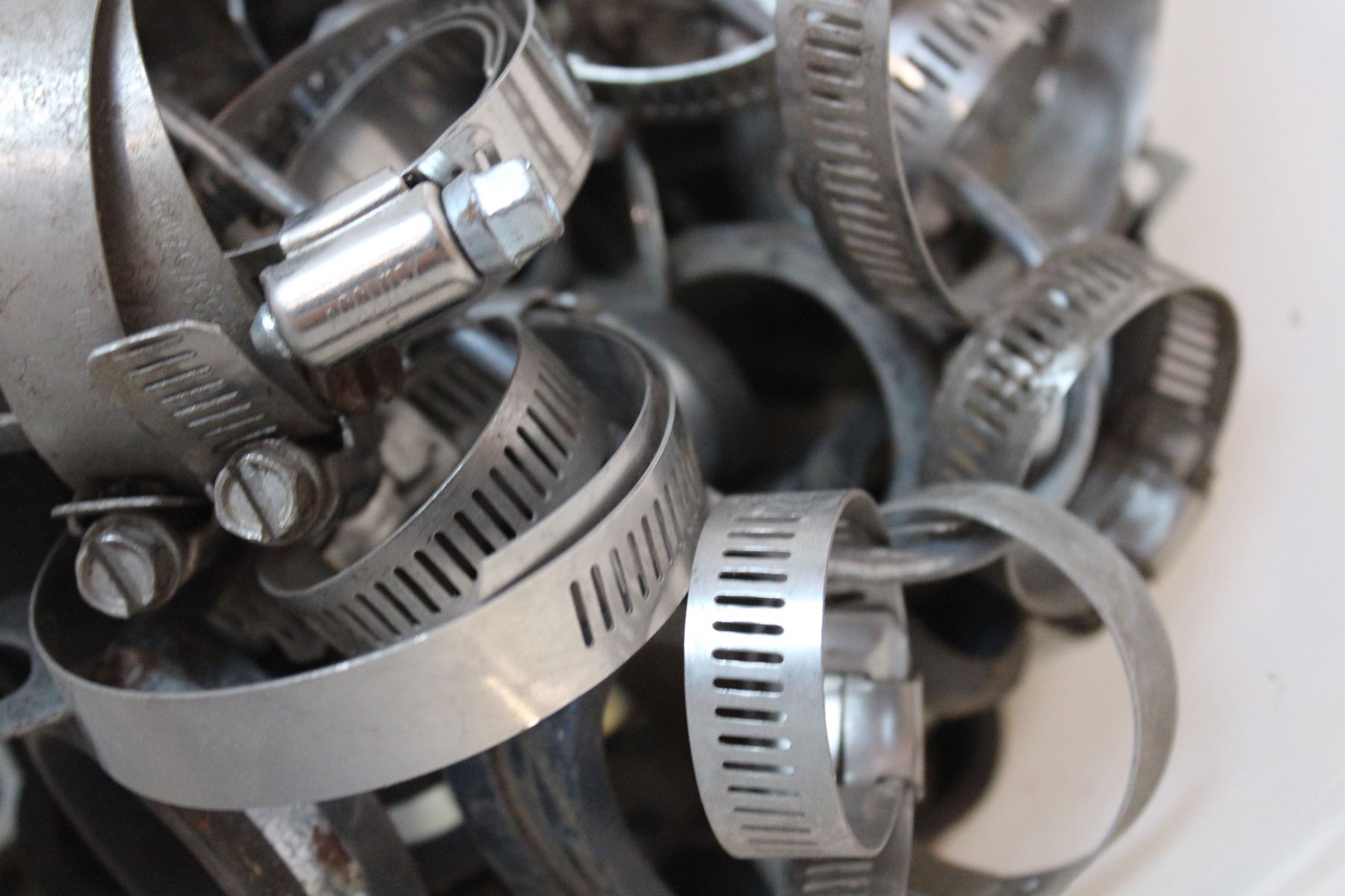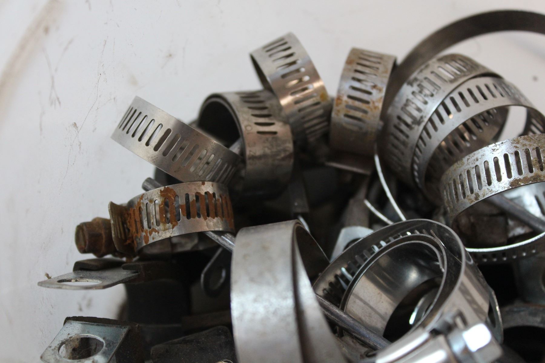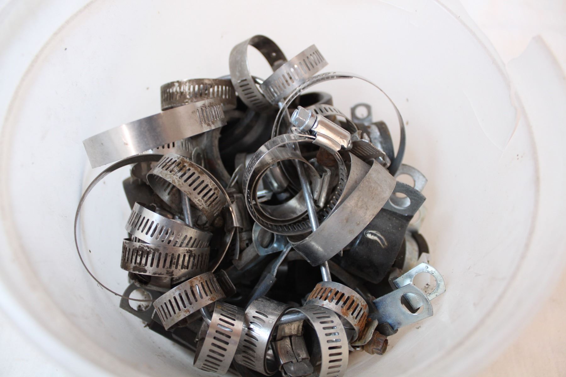 Pail of hose clamps