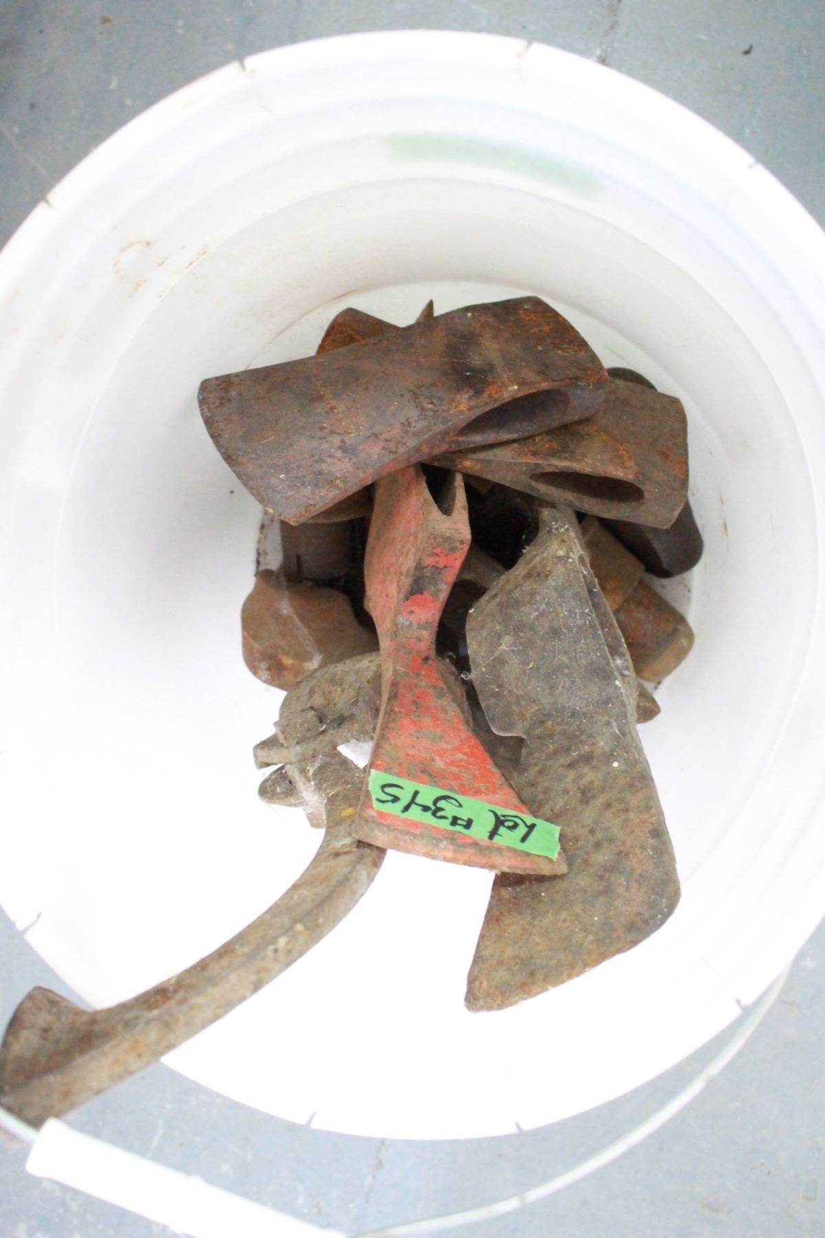 Pail with Axe; Pick Heads and Cant Hook Head
