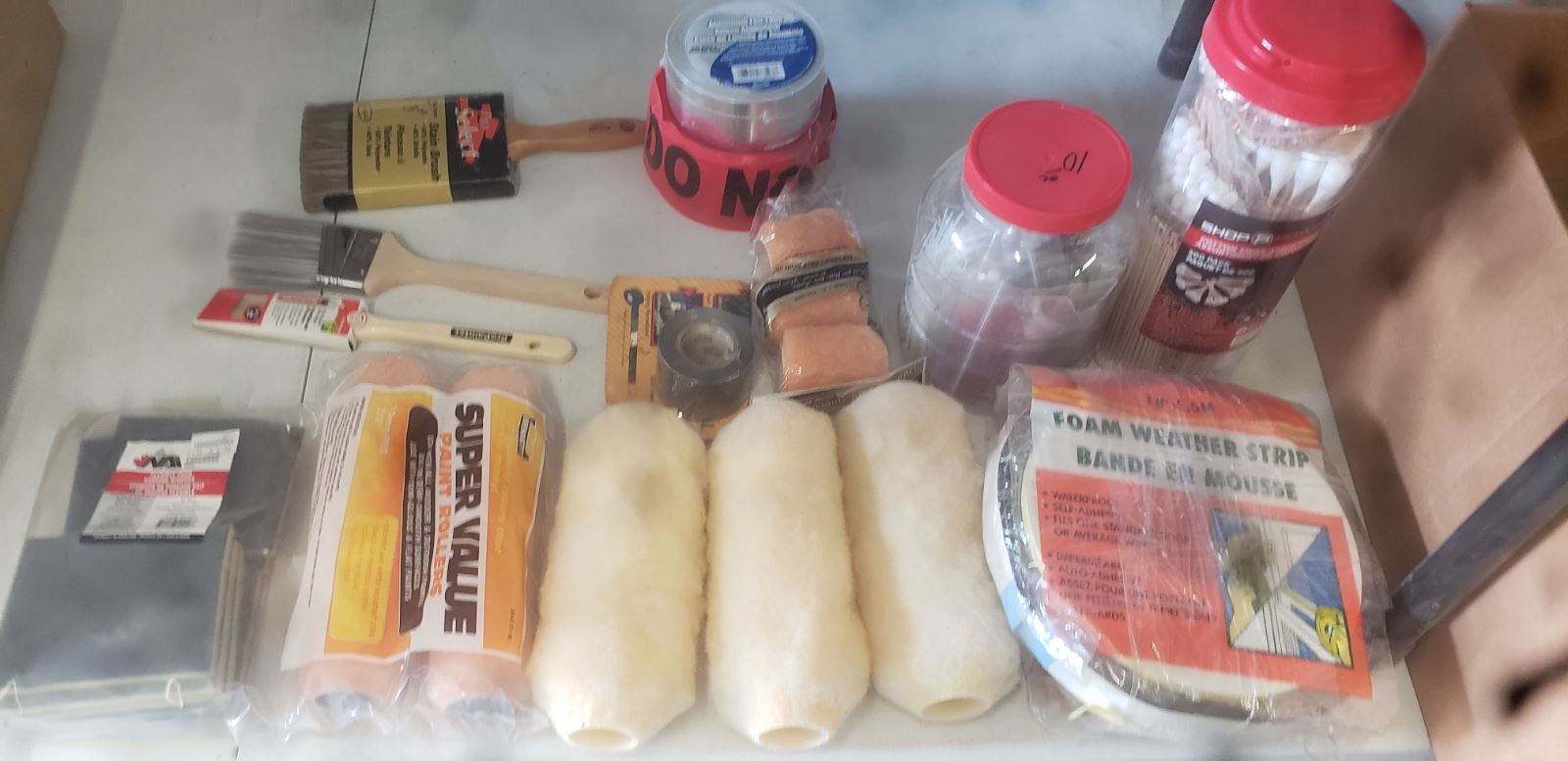 Paint Brush Rollers, Weather Strap, Tape, Swabs,