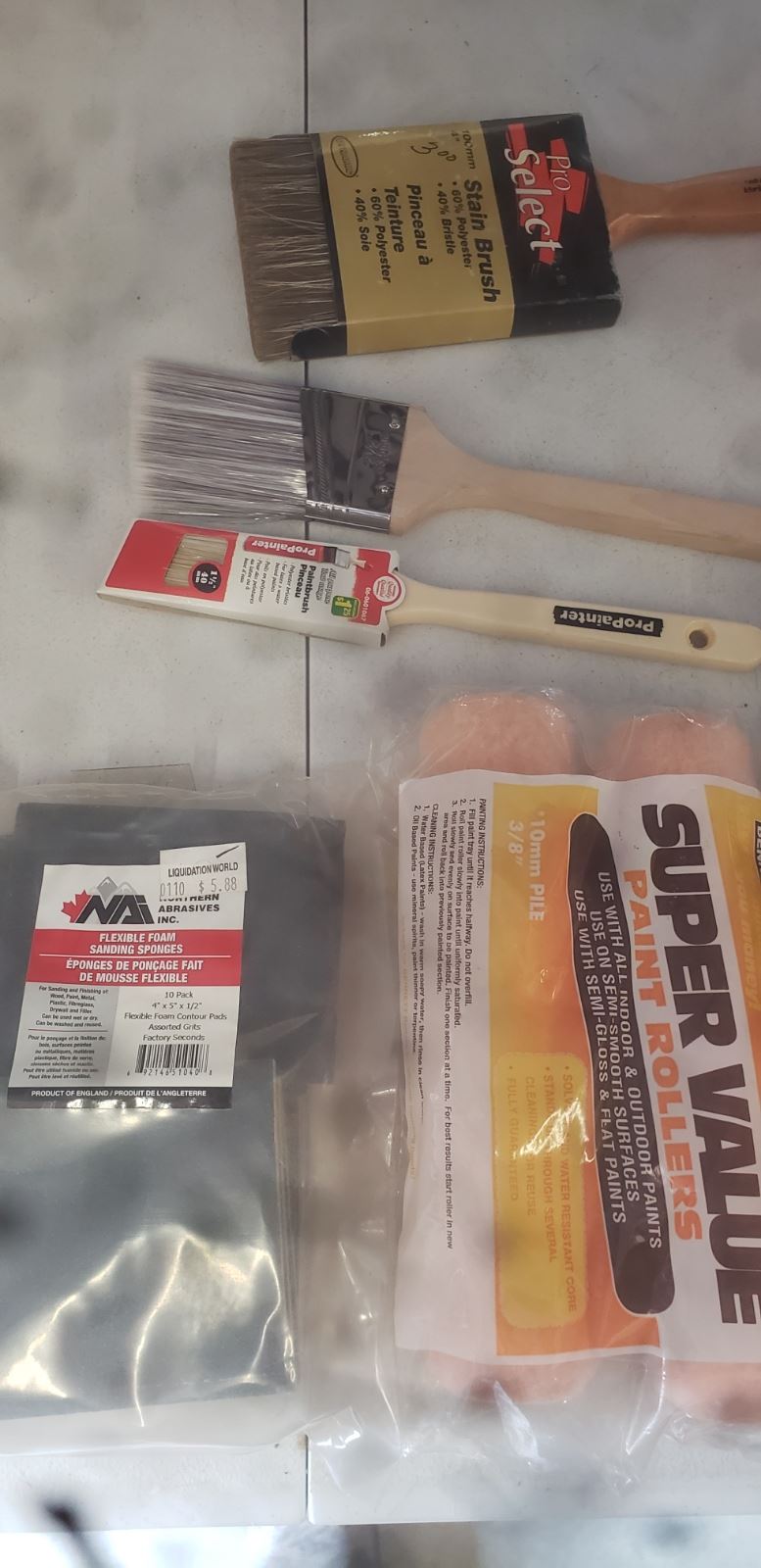 Paint Brush Rollers, Weather Strap, Tape, Swabs, Zip Ties