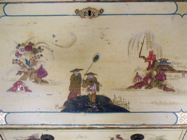 English chinoiserie, 2 drawers. Approx. 21.75" x 16" D x 38" H.