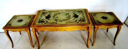 Paint decorated 3 part coffee table