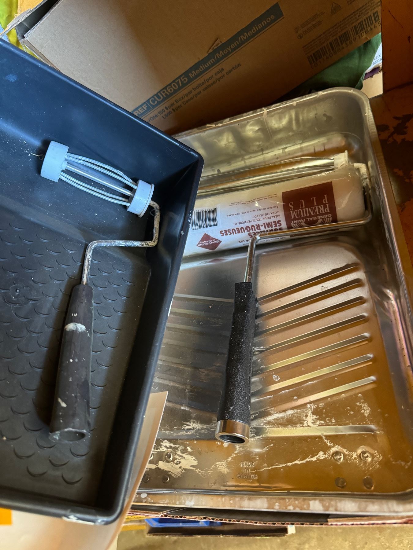 Paint rollers, and trays