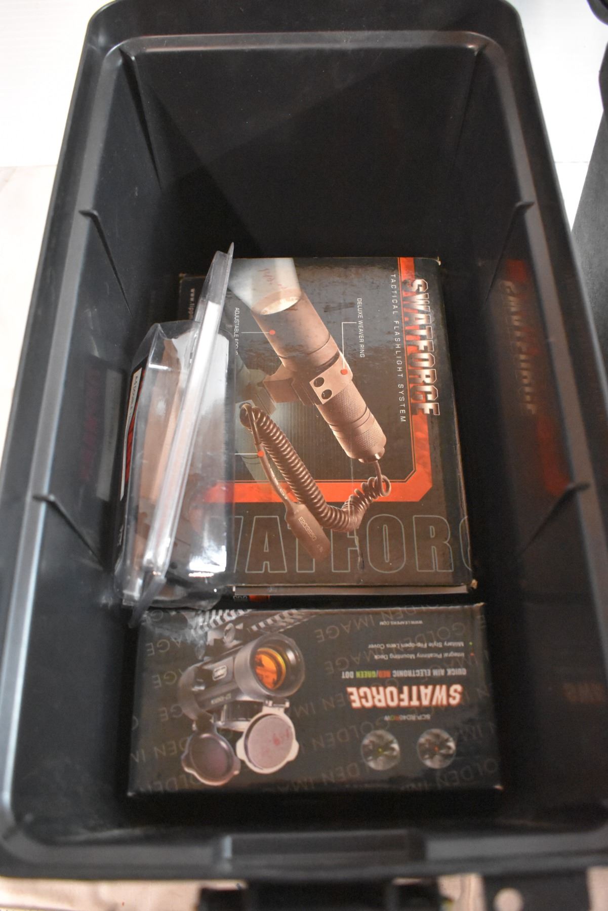 Paintball Scopes and Supplies in Boxes