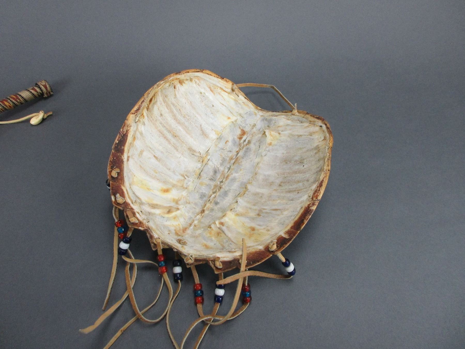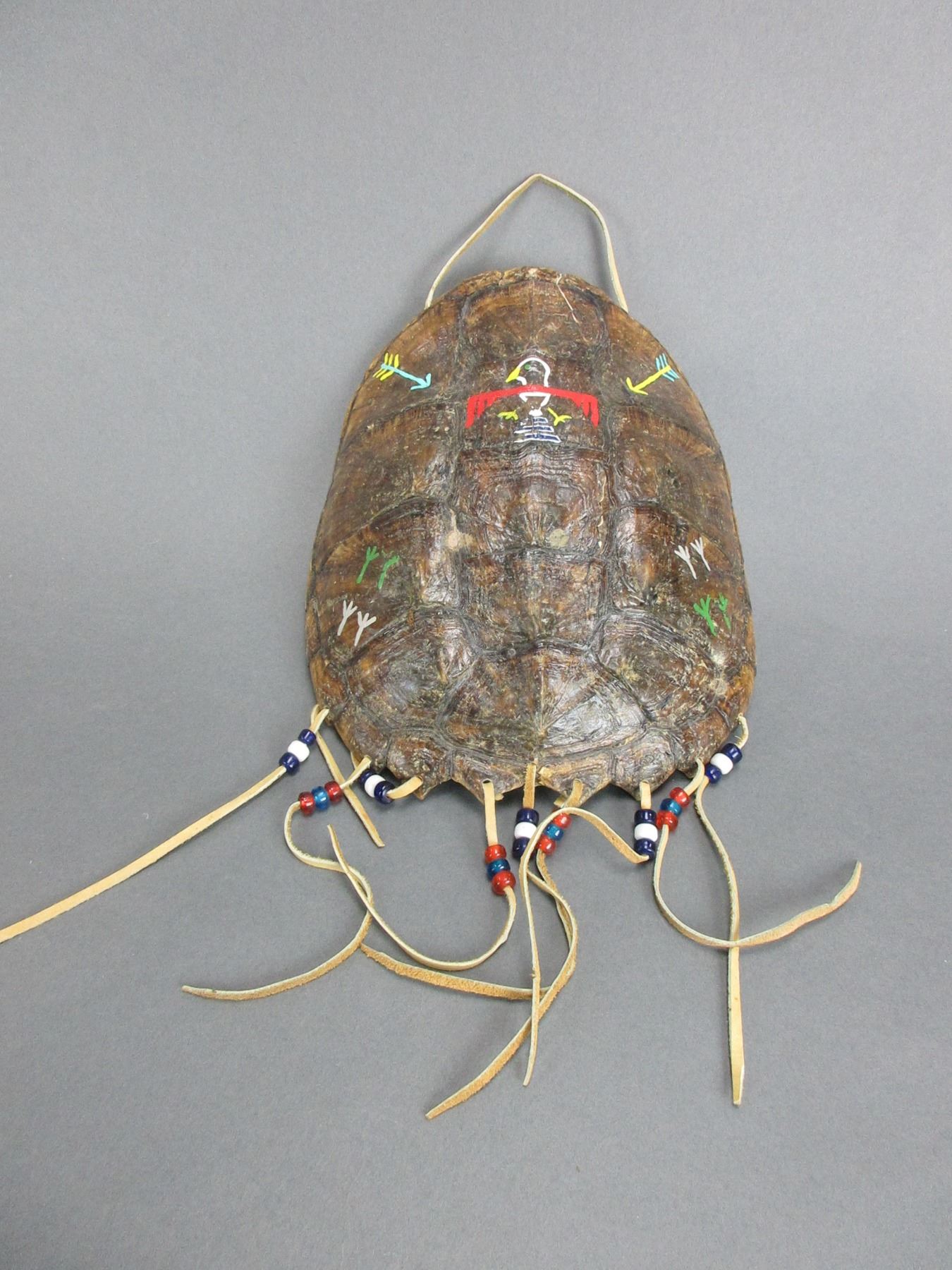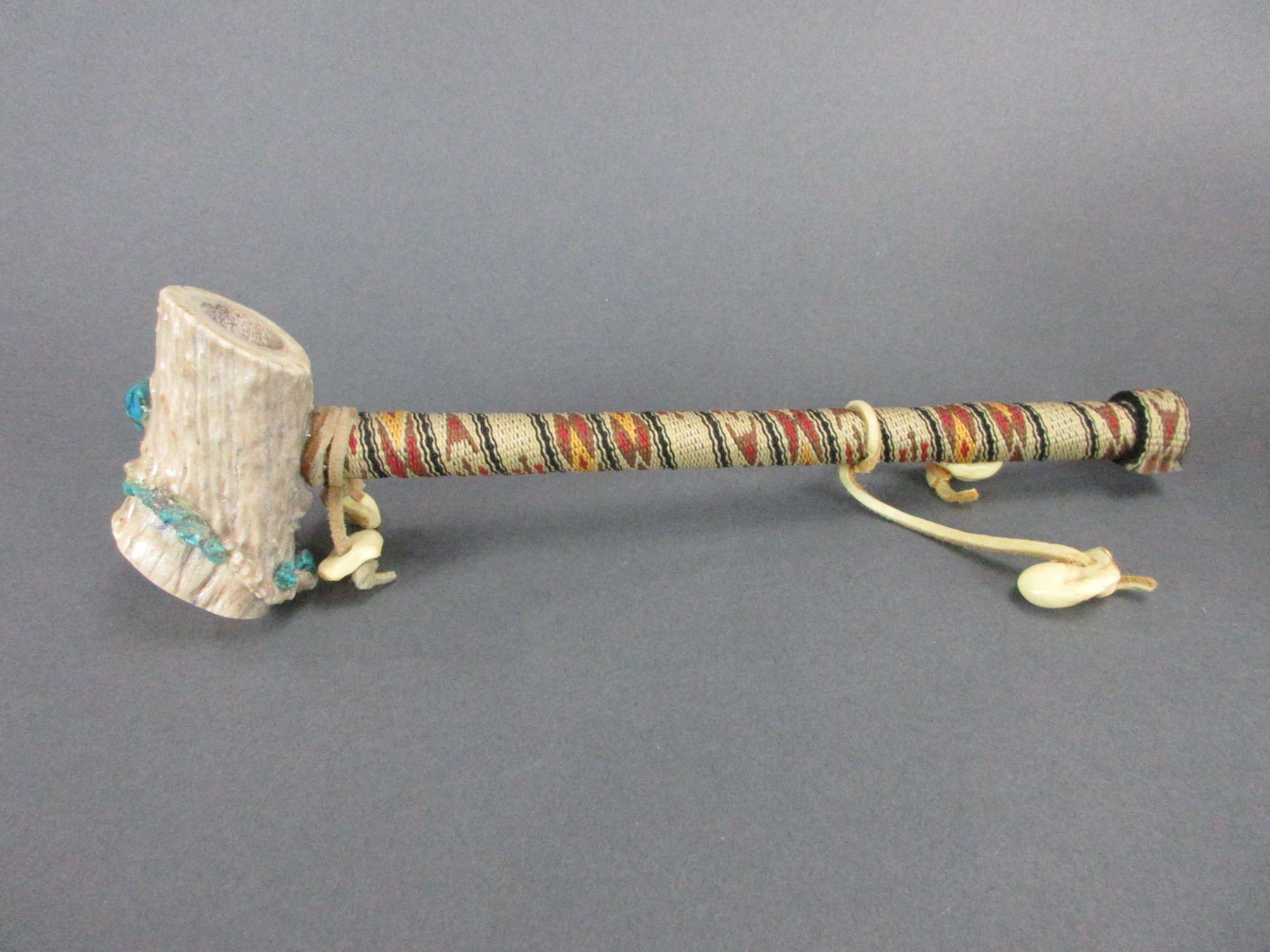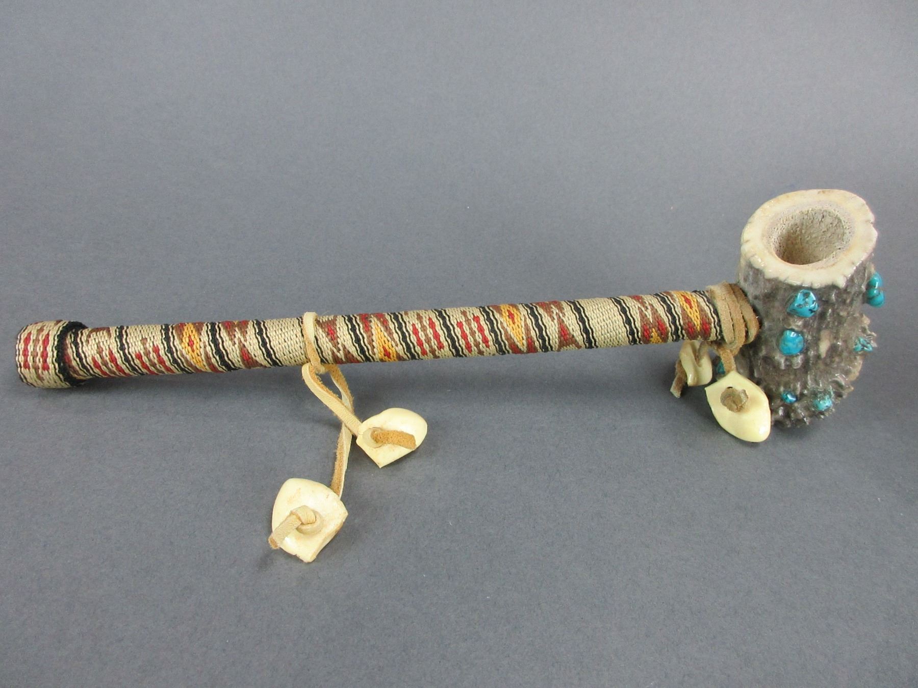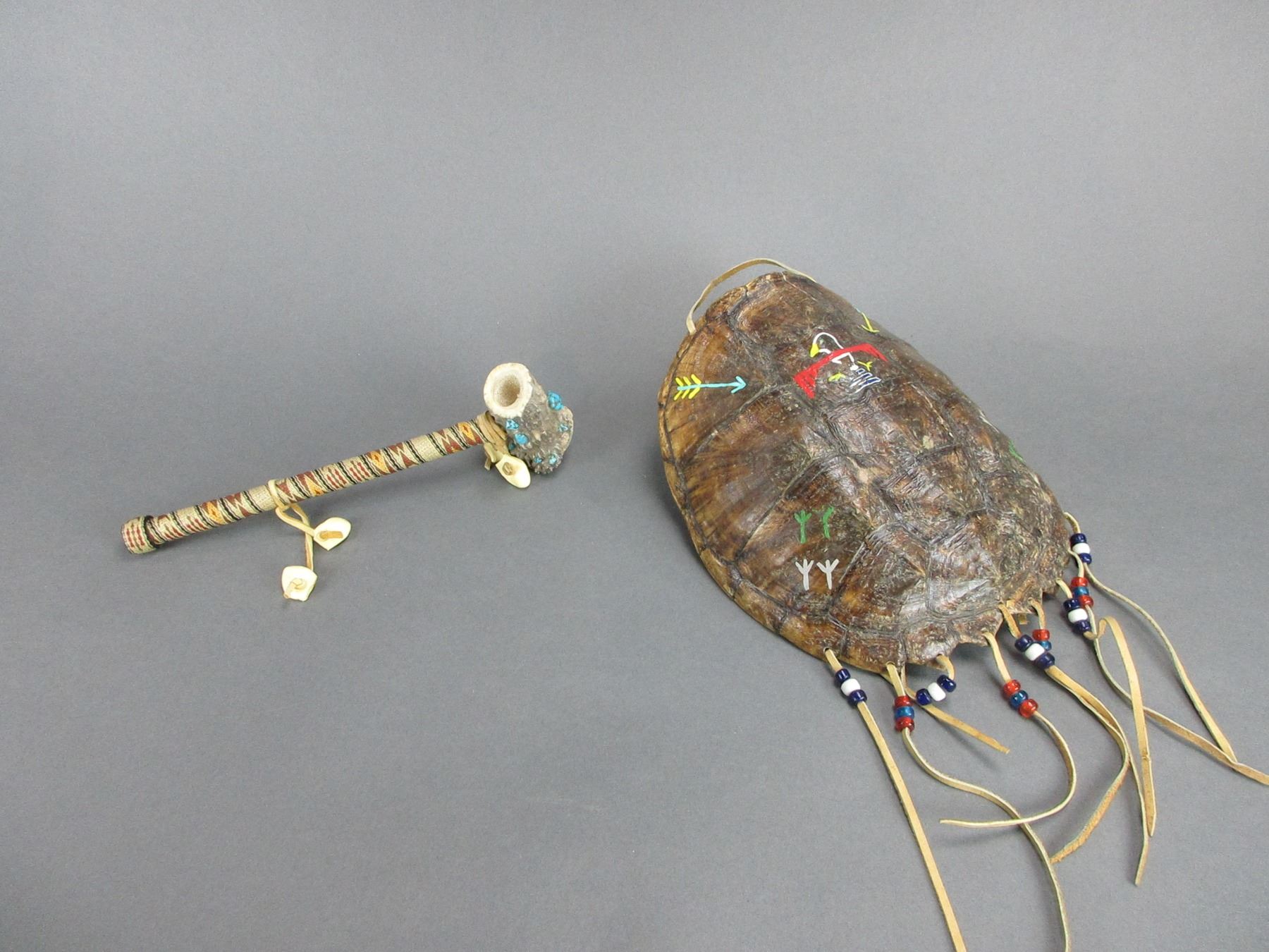 Painted And Beaded Turtle Shell- 10" X 8"- Antler Pipe With Turquoise Accents- Faux Elk Ivory Drops- Wrapped Stem- 8.75" Stem