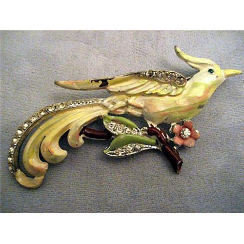 <tr><td>Title:Painted Bird Pin with Rhinestones</td></tr>
