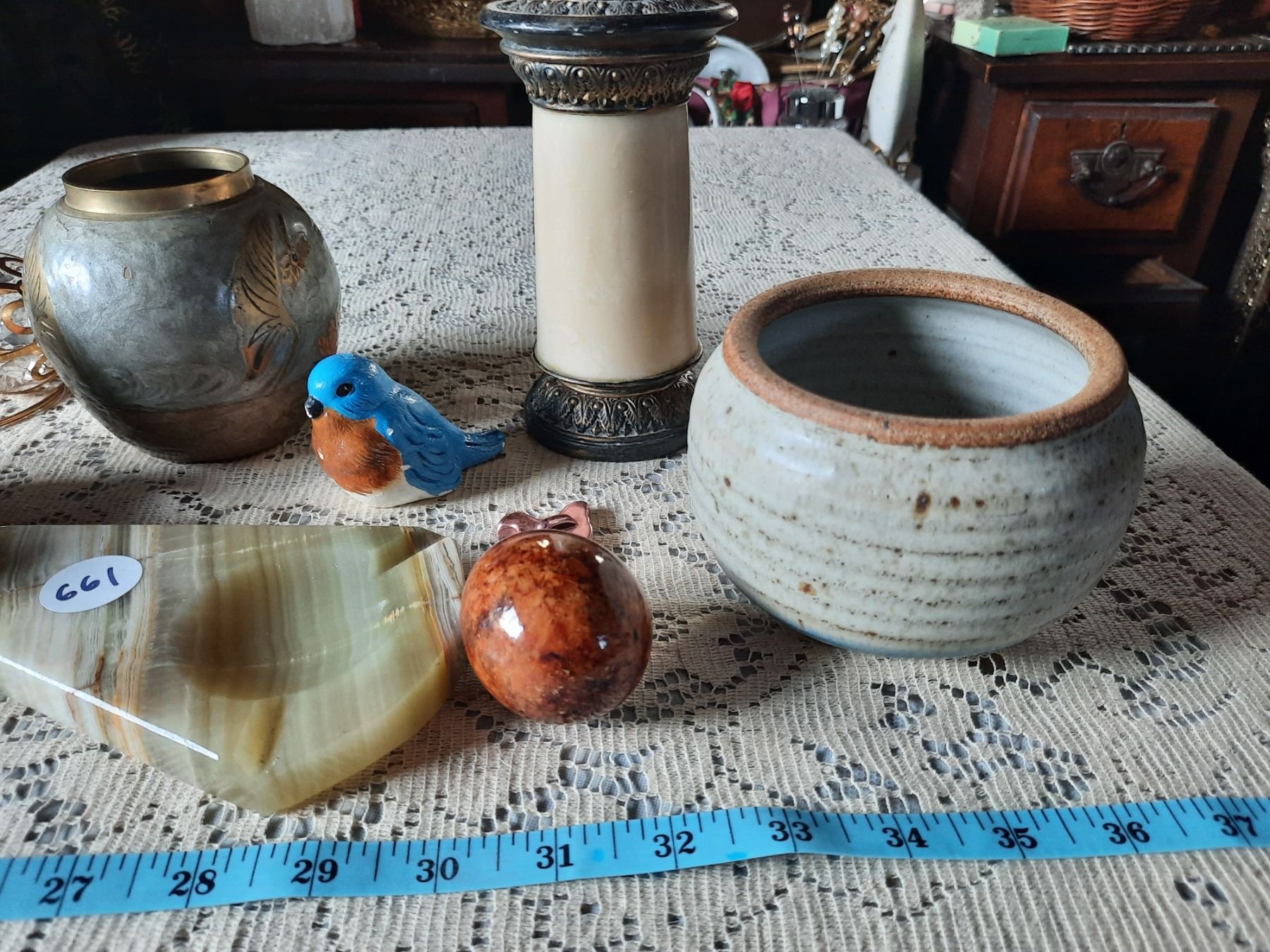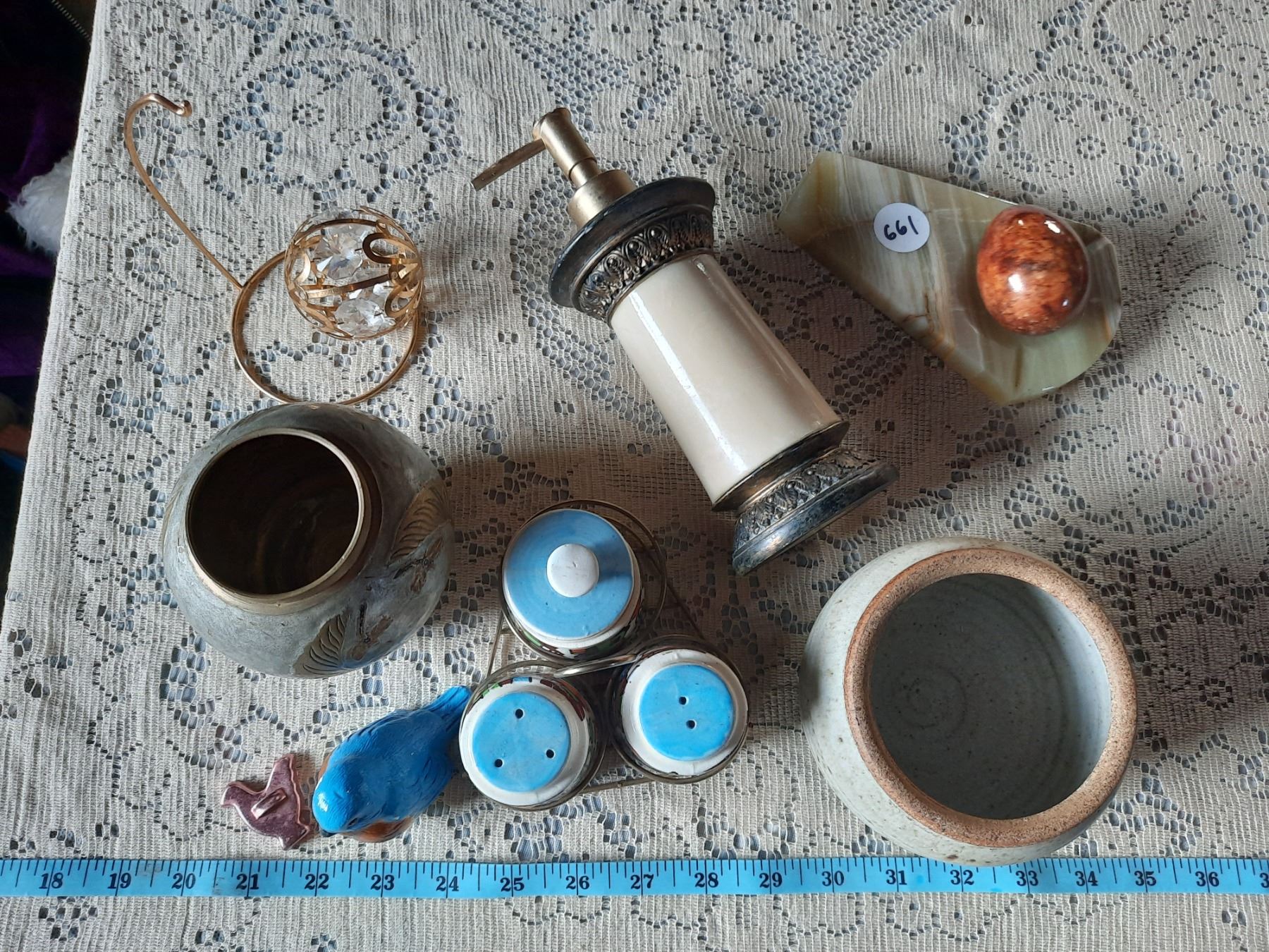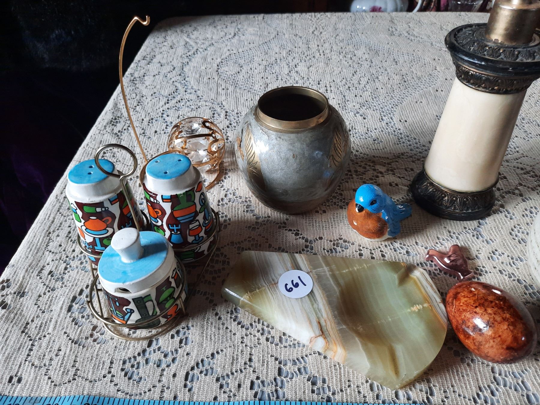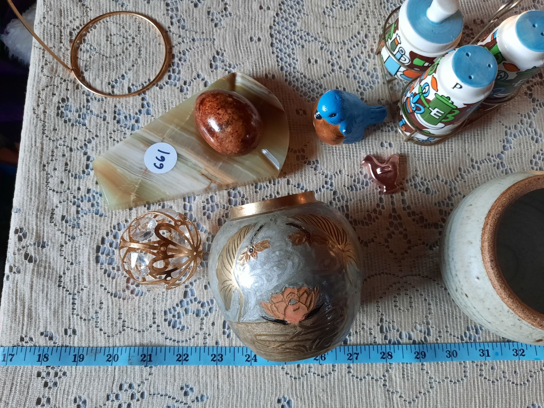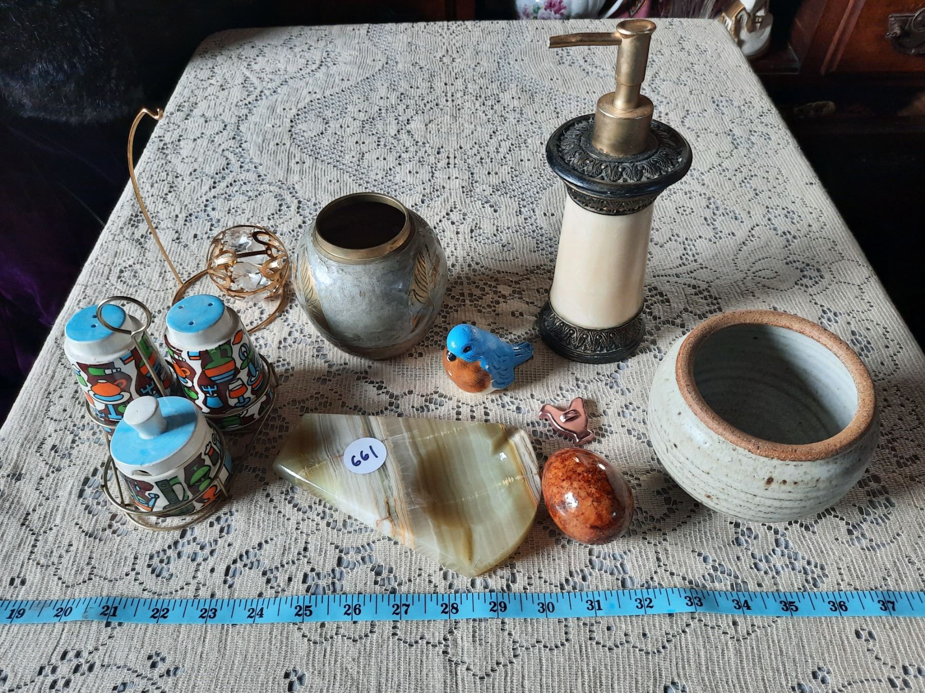 Painted Brass Vase, Pottery Vase, S&P set, etc