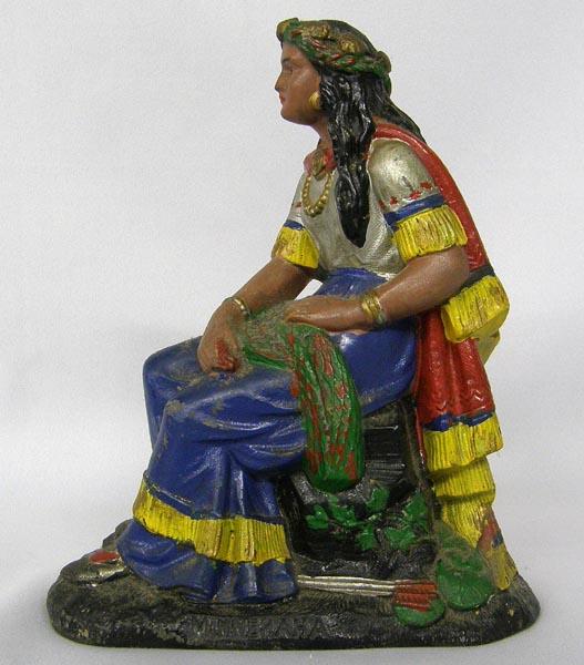Painted Cast Metal Figure of Minnehaha. Measures approx. 6.5''Hx5.5''Lx2.5''W. Buyers Pay Actual Shipping and Handling Charges(see terms and conditions for more information).