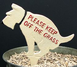 Painted Dog "Keep Off The GrassPainted cast iron dog. "Keep Off The Grass". Sign is painted on both sides . Great for apartments, duplex, single homes and other lawns to protect your property. Measures: 12 1/4" H x 10" x 1/4" D.