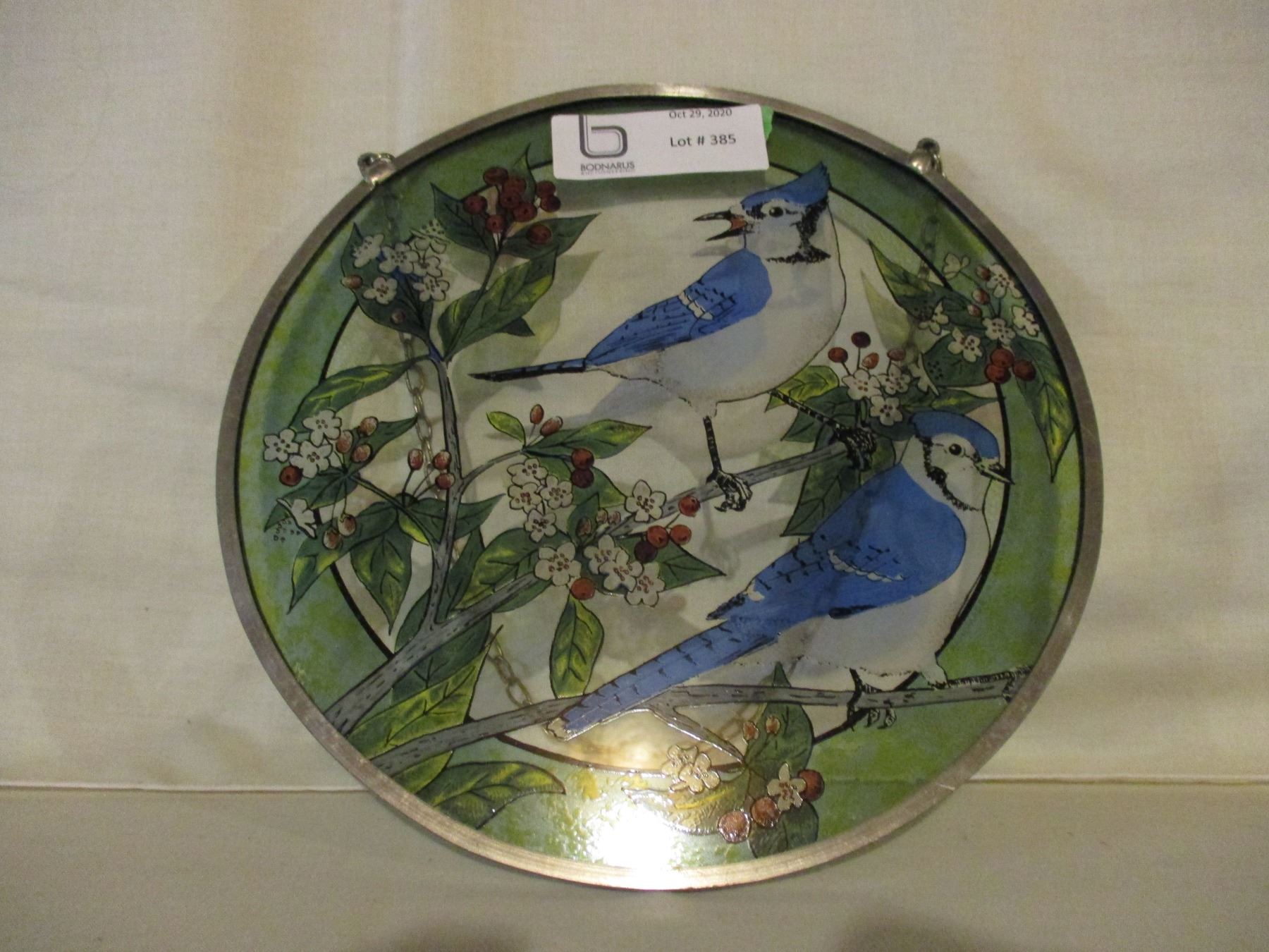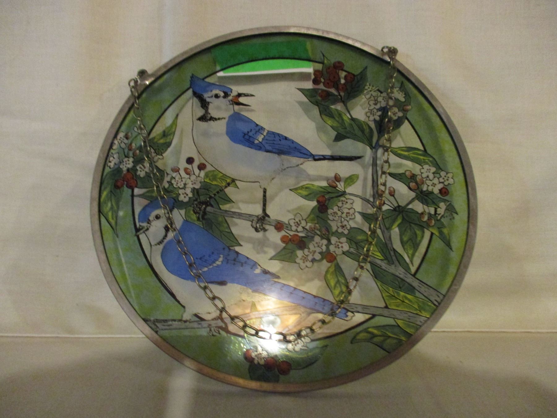 Painted Glass Bird (Blue Jay) Hanging Ornament