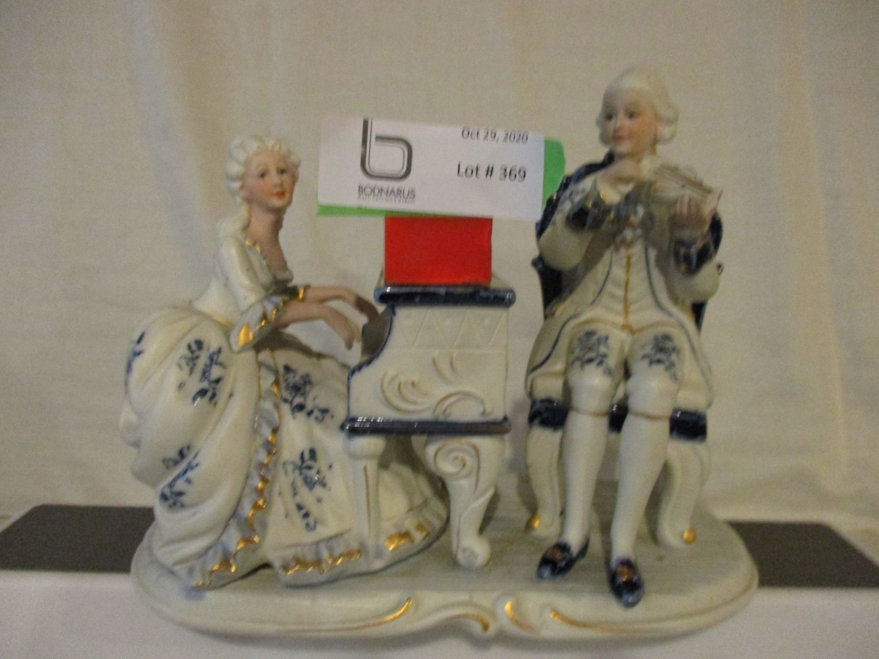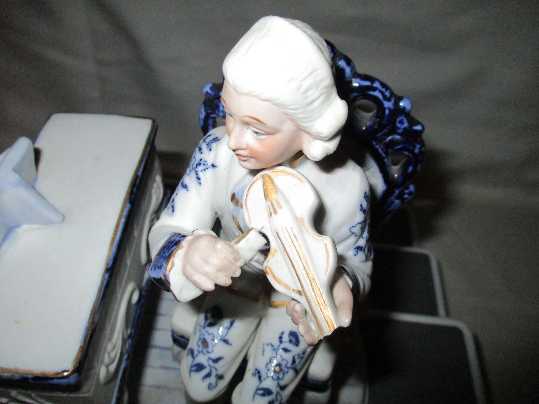 Painted Japanese Music Scene Ornament Blue and White (Small CHip Taped to Bottom)