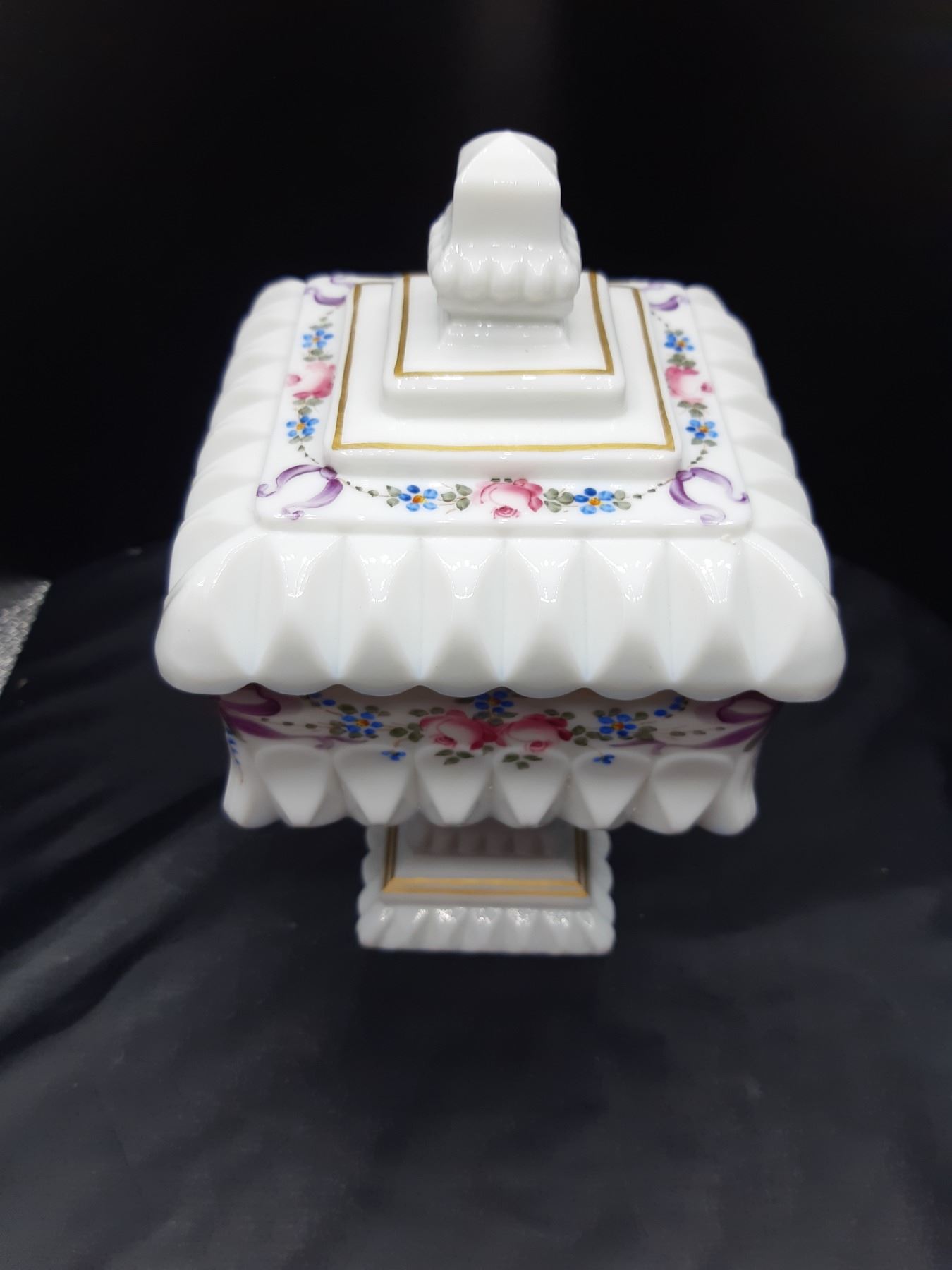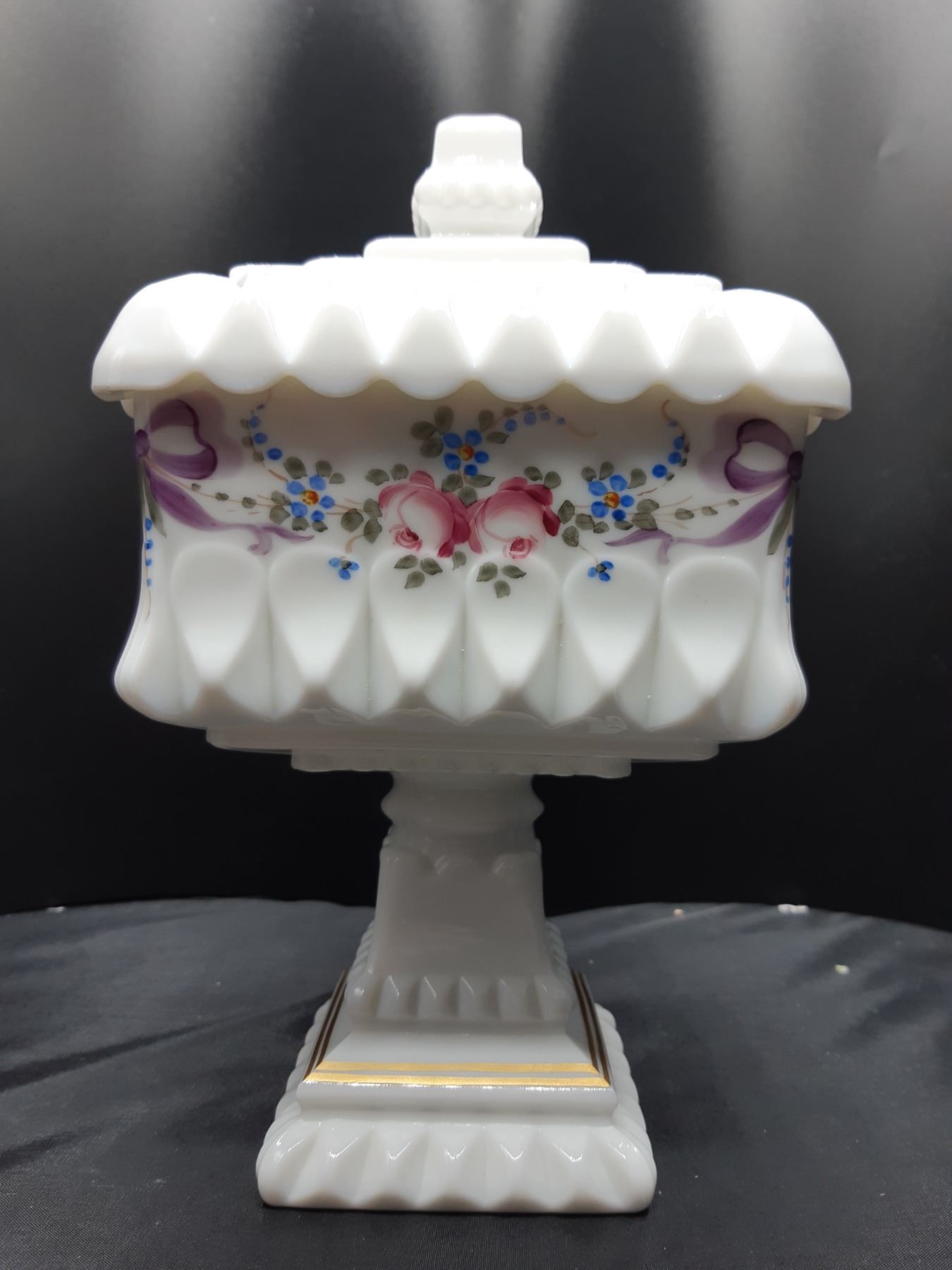 Footed, lidded container 5x5x10 Pickup at 9 am