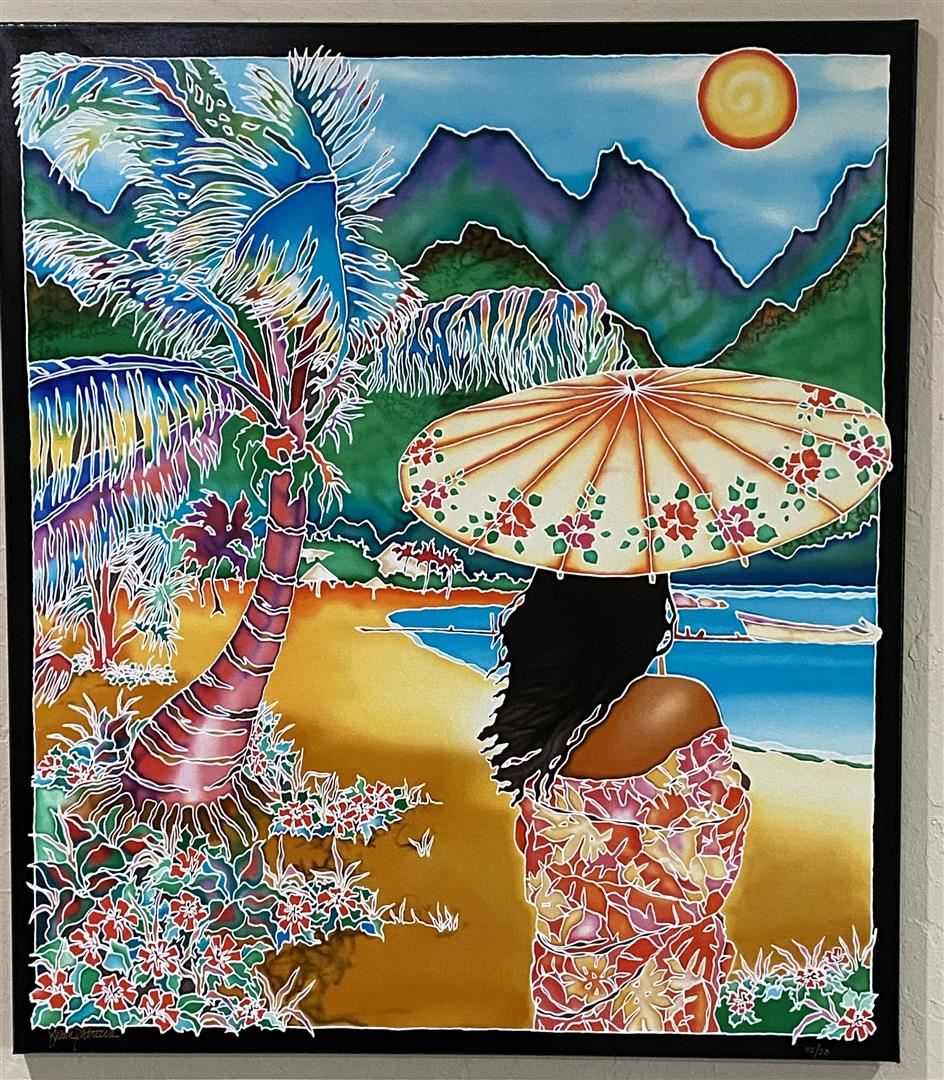 Susan Patricia's giclee on canvas "Painted Parasol" reminds us of the need for its protection from sun & rain. Size 27.5x37.5"