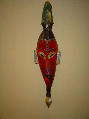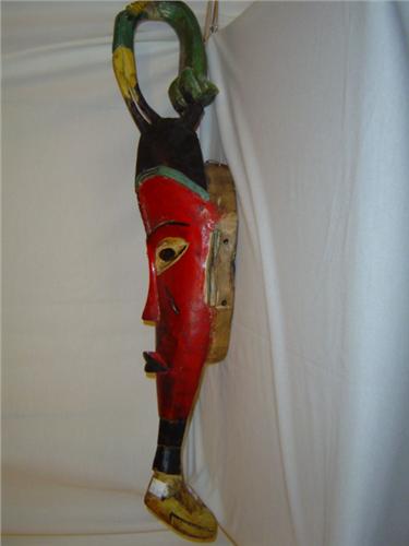 Colorful mask with Pelican on top. 26"H, 6.5"W