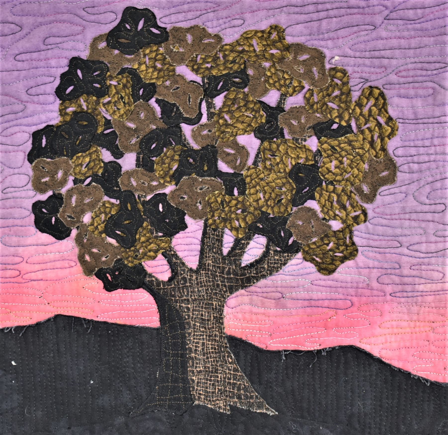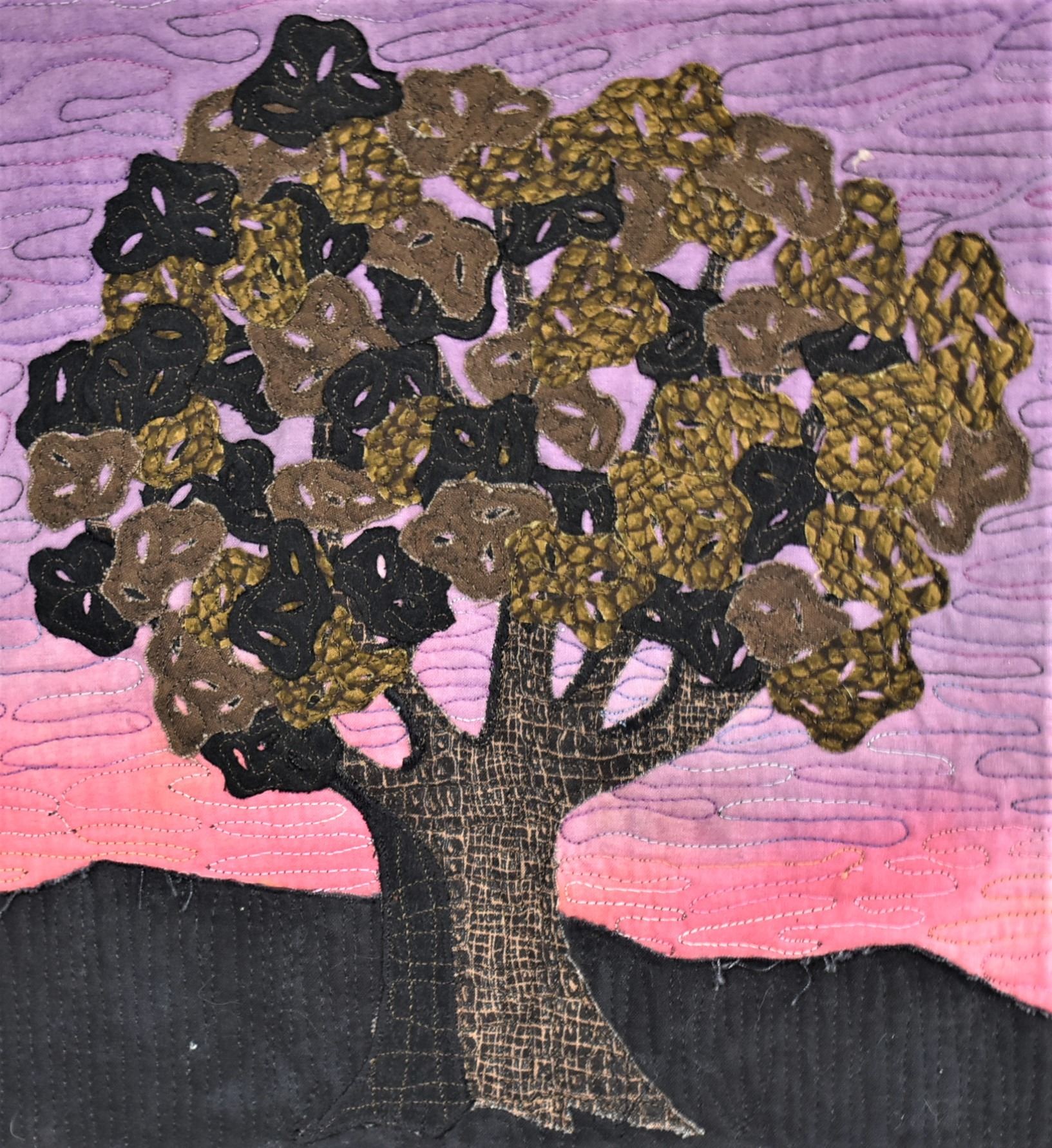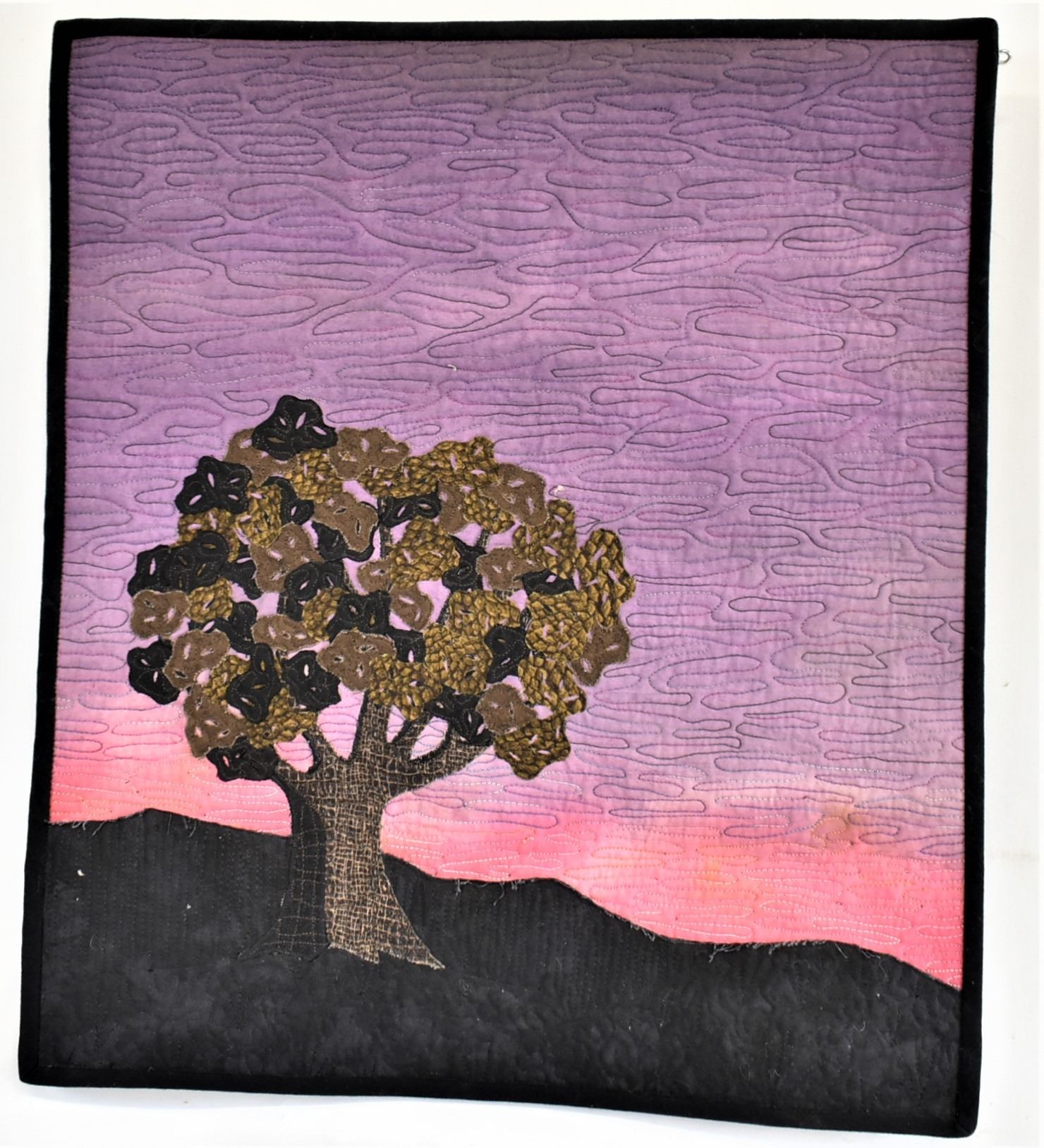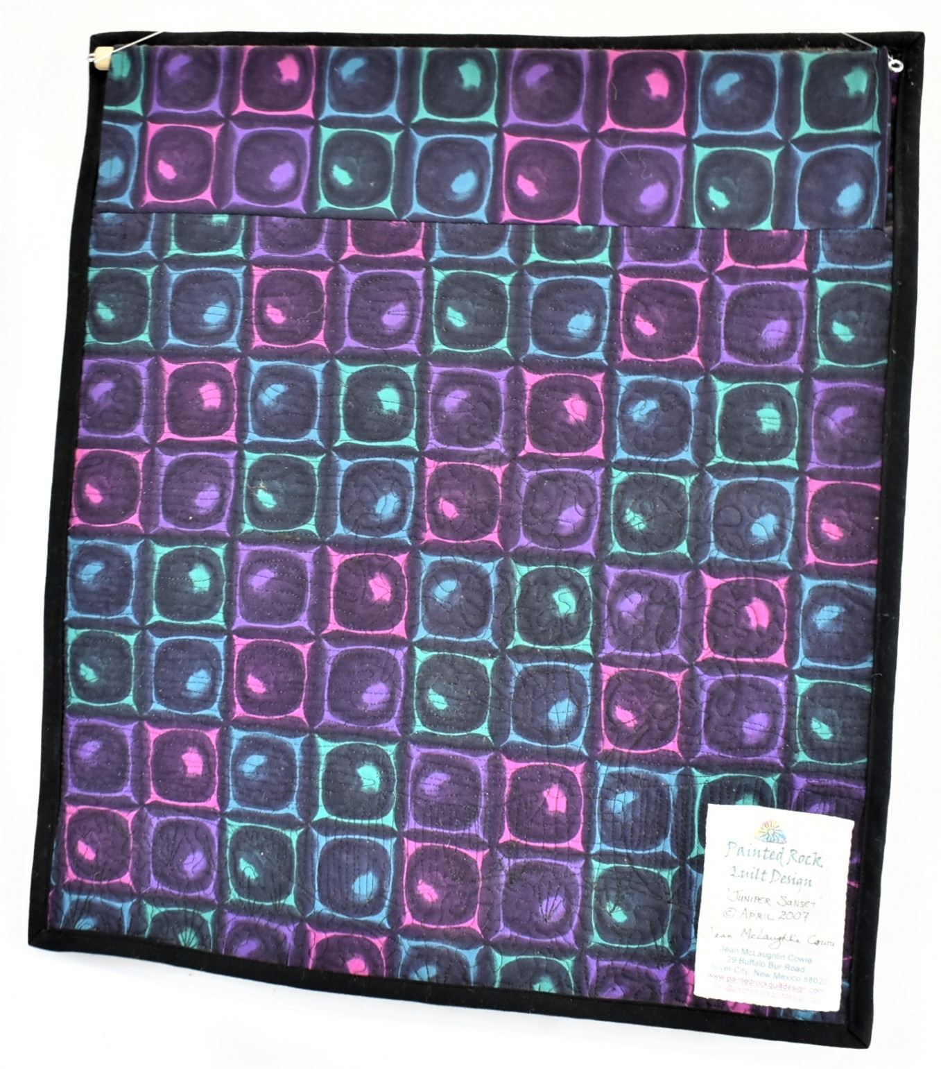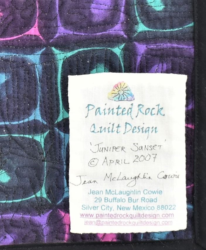 2007 Painted Rock Quilt Design Wall Hanging ''Juniper Sunset'' by Jean McLaughlin Cowie of Silver City, NM, measures 17.5'' x 19'', dowel rod for hanging, beautiful deep colors