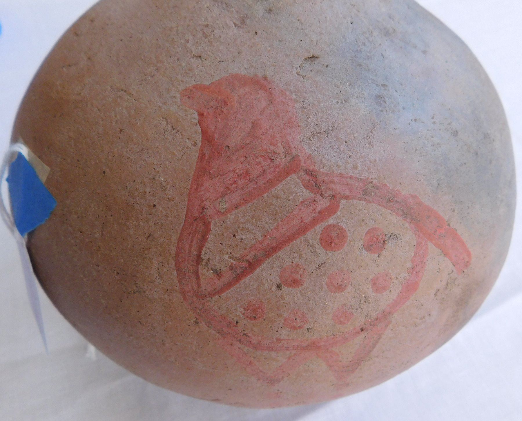 Painted San Diego Olla, early historic period. Made of clay and paint, the item measures 7.5" x 8" x 7.25". From an old, Needles, Calif. collection. 2 birds painted on rare pot. Condition: Good, see images. Shipping: $36.50 w/insurance and signature, double-boxed, due to value.