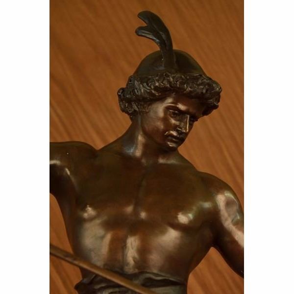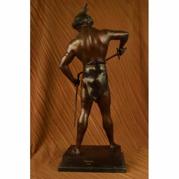 Painted Spelter Sculpture Post Pugnam. Inscribed on tablet Apres le Moisson des Lancers Lolivier Renaitra Plus Beau. Depicts classical warrior sheathing sword. Bronze dimensions with marble base: Height 35 X Width 18 inches. Weight: 40 lbs. Please Note: This is a reproduced bronze sculpture from the original molded and signed. This featured bronze sculpture is a recast after the original, and has been done recently. This 100% bronze sculpture is an abstract piece certain to be a conversation piece.