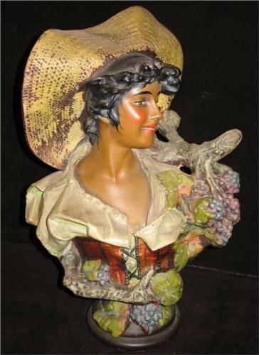 Painted Terra Cotta Bust, 19 x 12, small chip on hat rim.