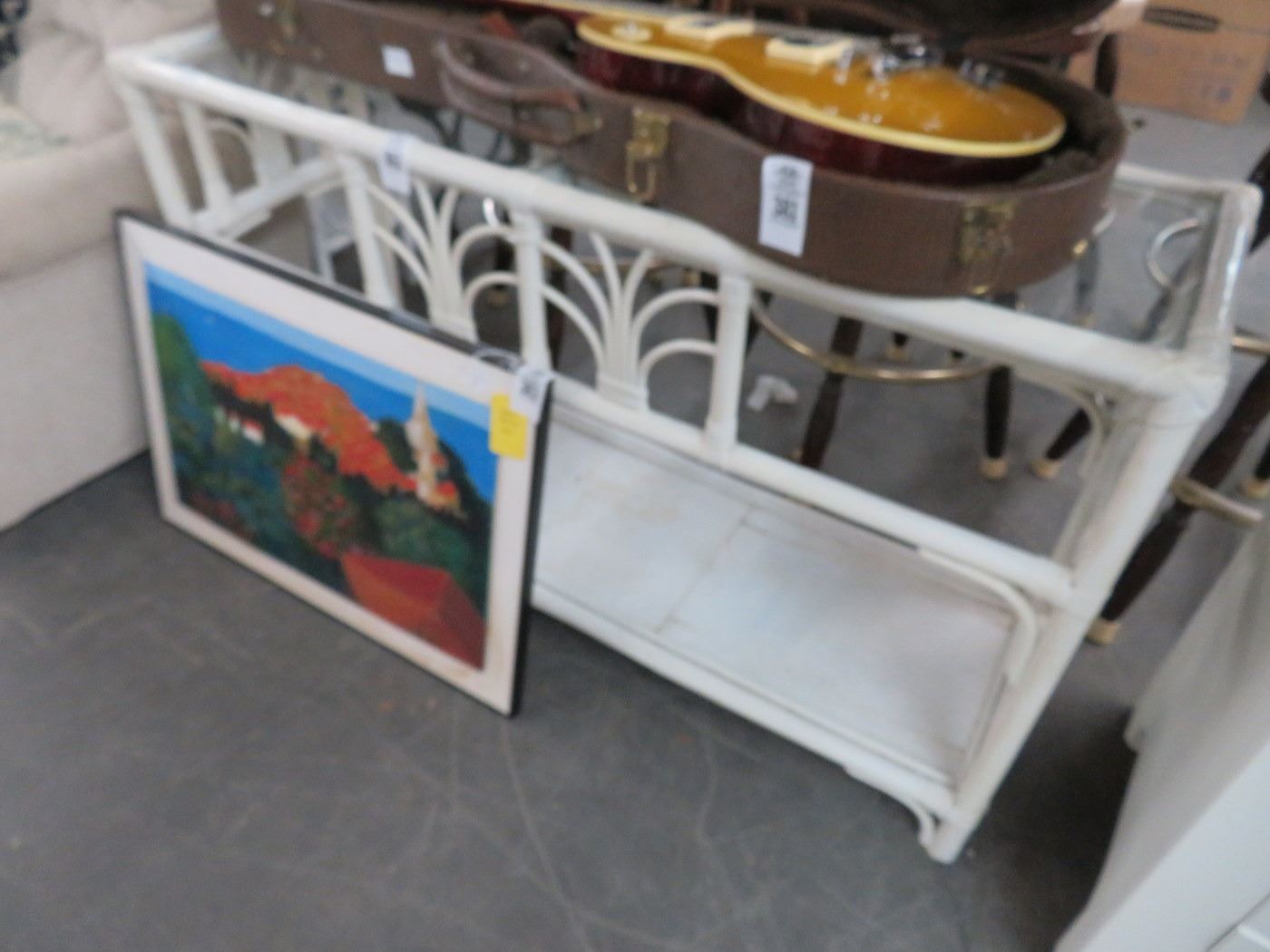 Painted White Rattan Glasstop Hall Table