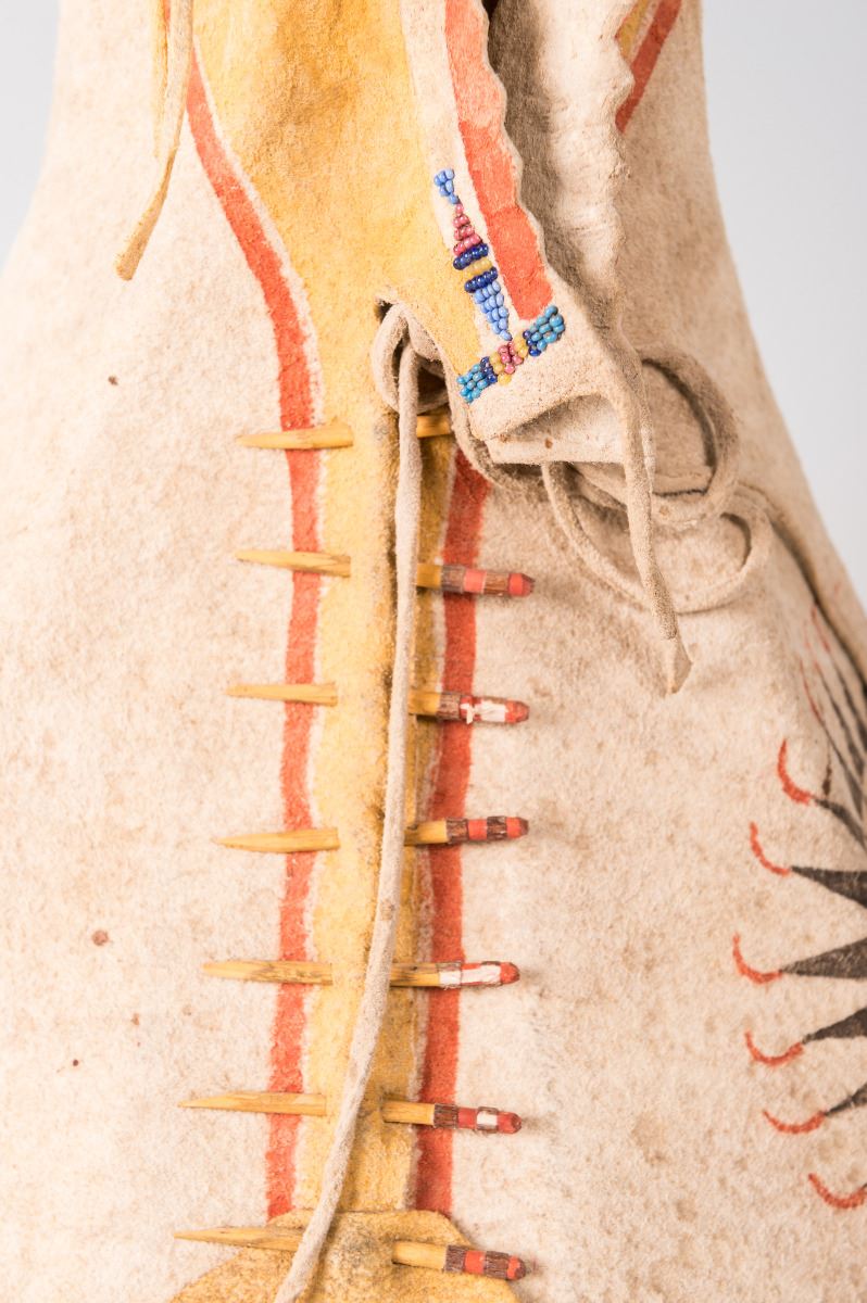 Painted and Beaded Toy Teepee. 23" tall, 15" in diameter with finely painted and beaded decorations. Circa 1970s.