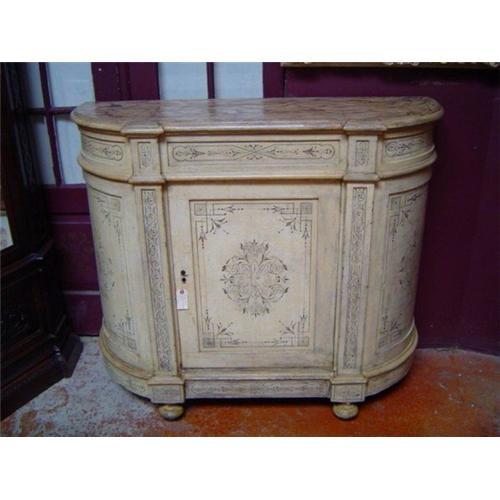 Painted credenza, inlaid black line work and faux marble painted top, ca 1820