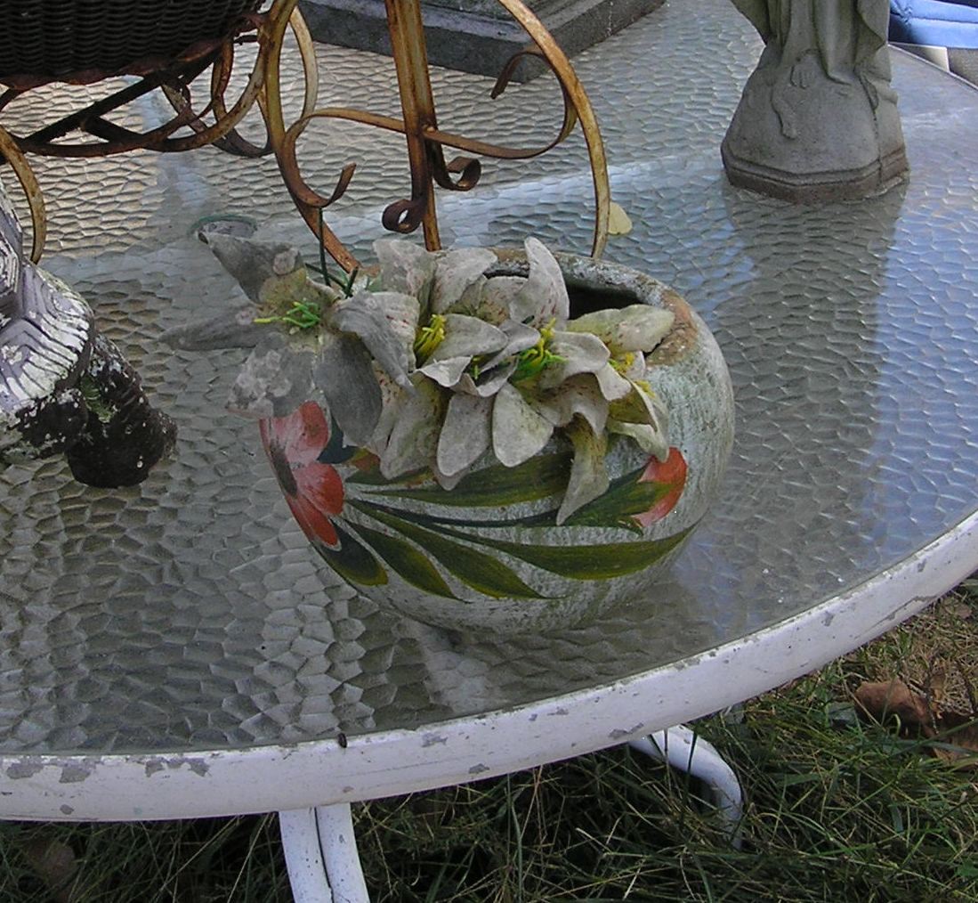 Painted earthenware planter 9 inches round by 6 1/2 inches high est. value 30.00-35.00