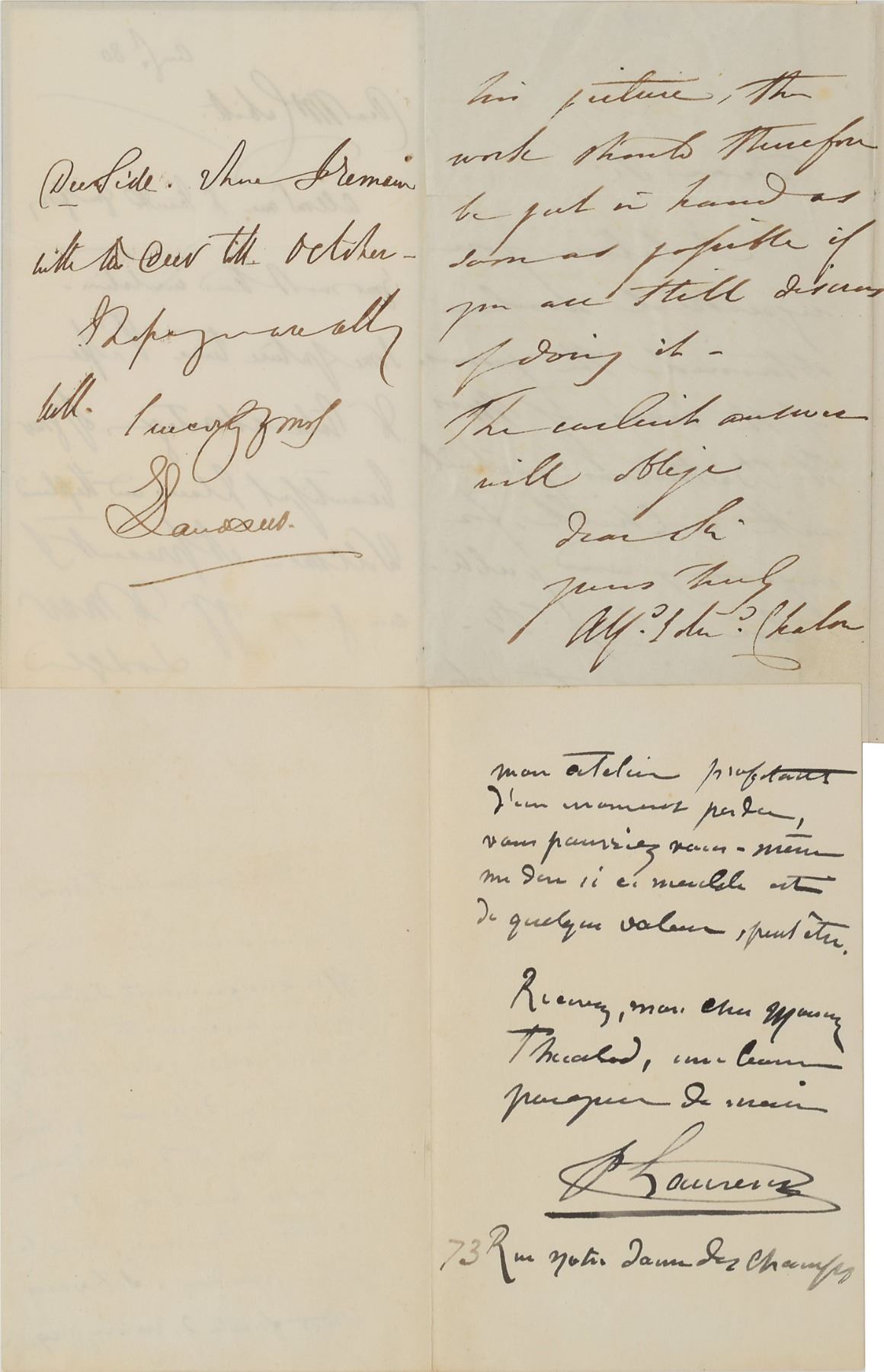 Three ALSs by notable 19th century painters, including: Jean-Paul Laurens, Alfred Edward Chalon, and Edwin Henry Landseer. In overall fine condition.